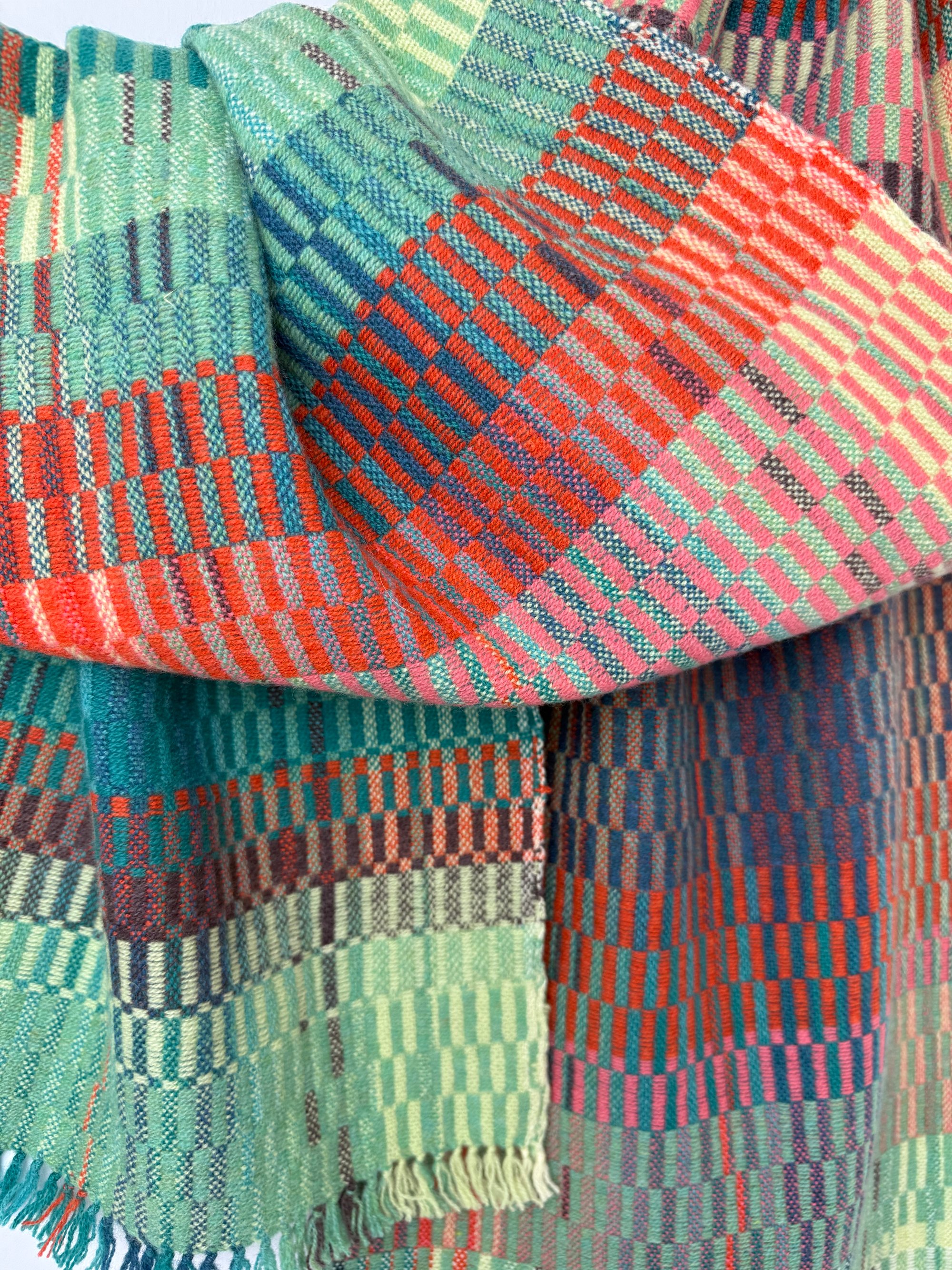 100% lambswool scarf handwoven on my preloved floor loom in my garden studio overlooking the North Cornwall coastline.