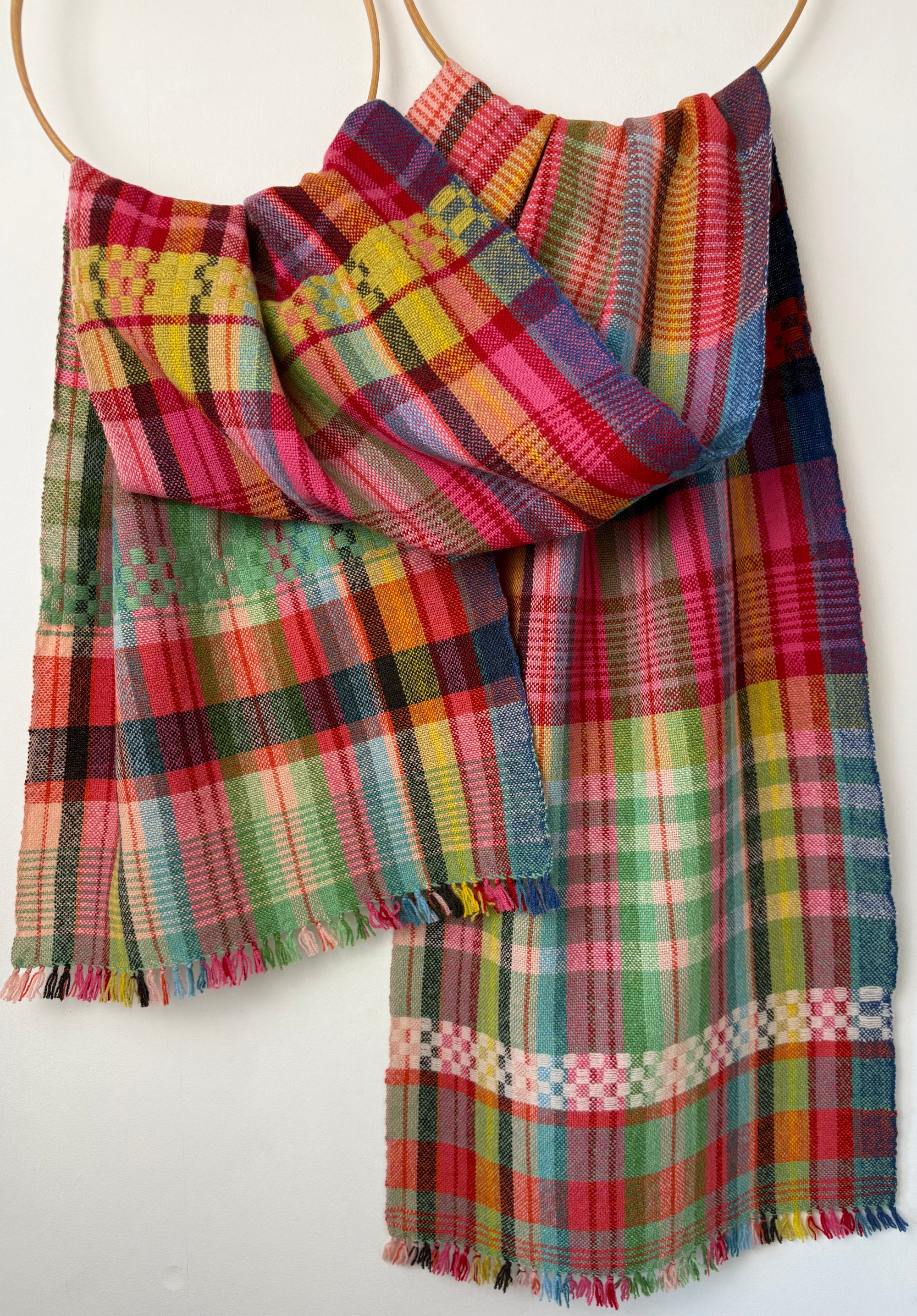 100% lambswool scarf hand woven on my preloved floor loom in my garden studio overlooking the North Cornwall coastline.