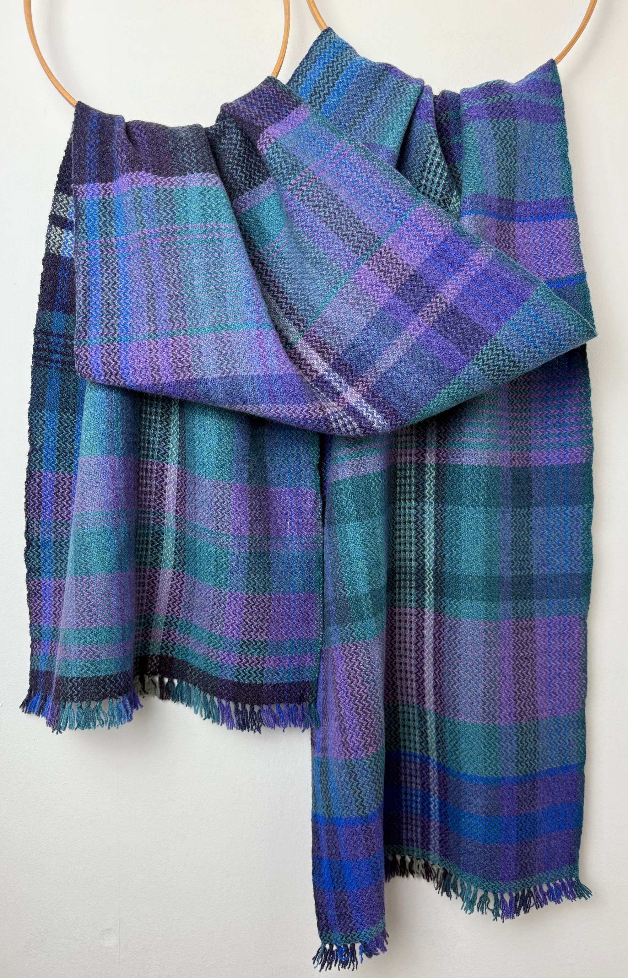 100% lambswool scarf hand woven on my preloved floor loom in my garden studio overlooking the North Cornwall coastline.