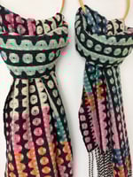 It measures 163 cms x 37 cms plus twisted ends.