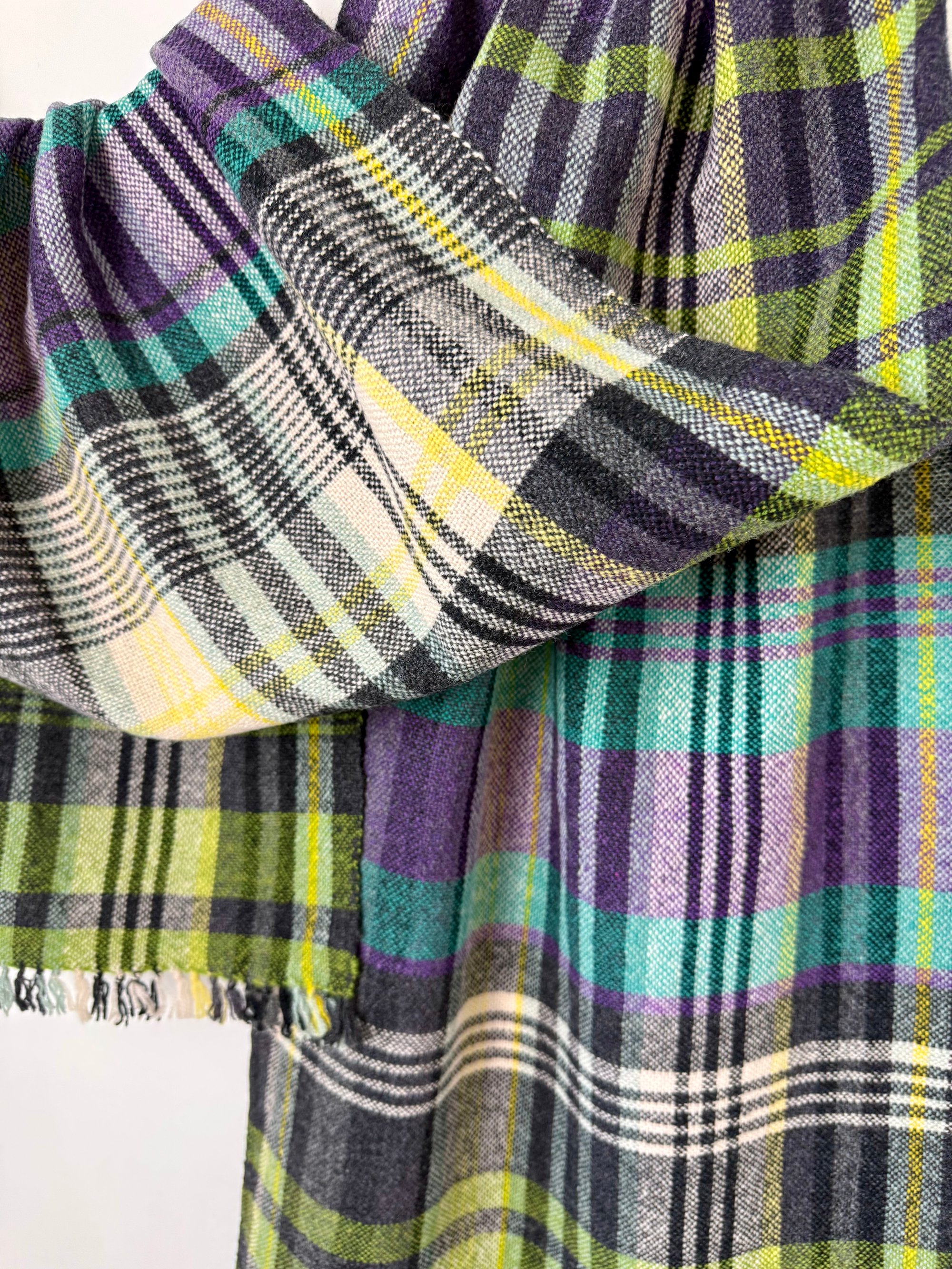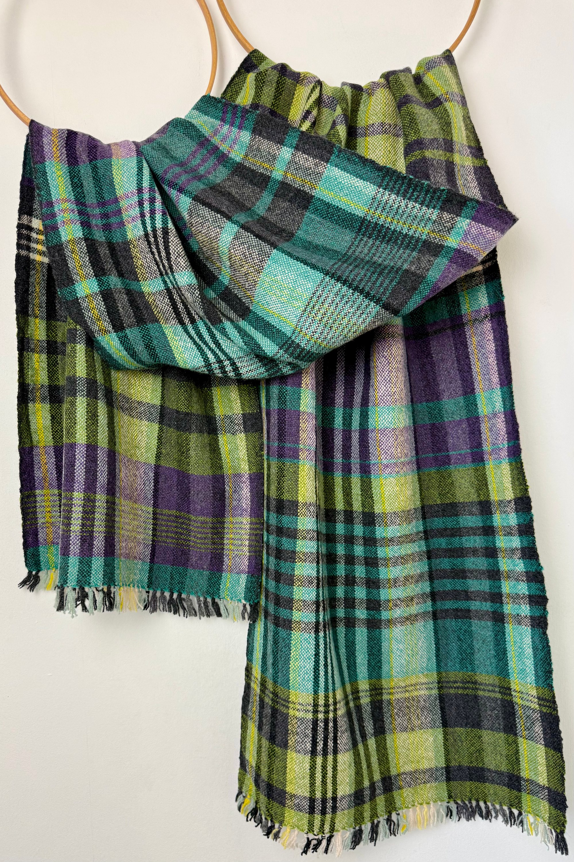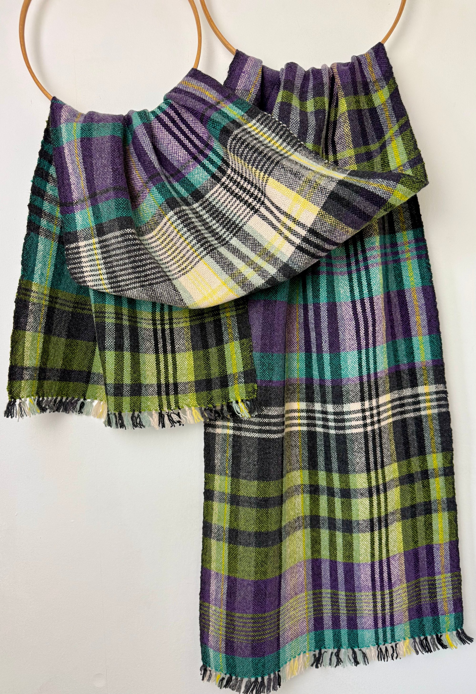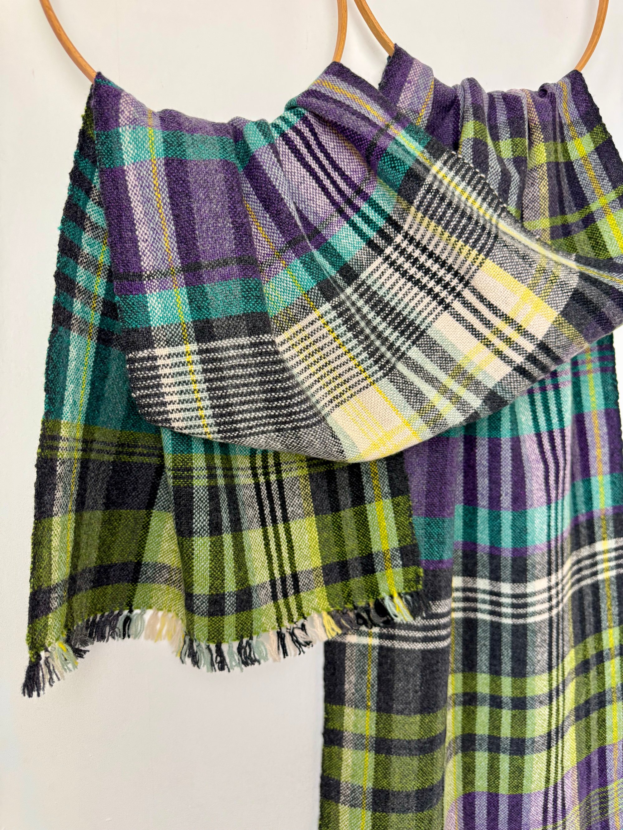 100% lambswool scarf/shawl, hand woven on my preloved floor loom in my garden studio overlooking the North Cornwall coastline.