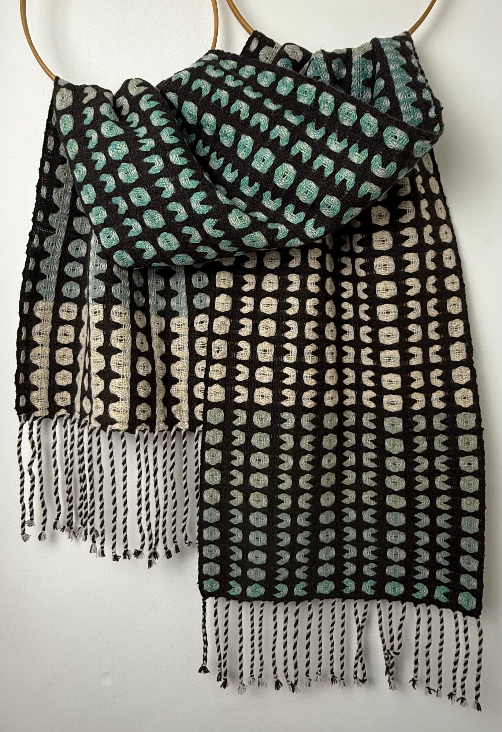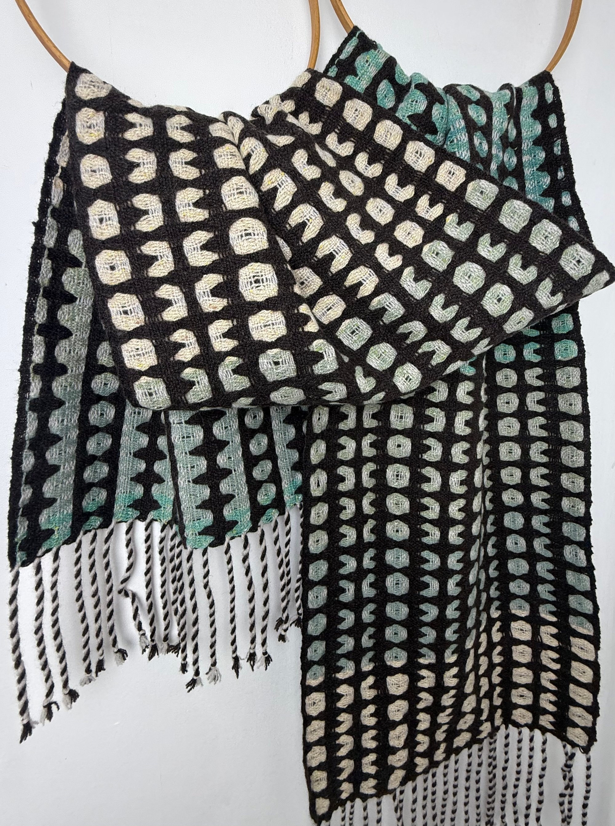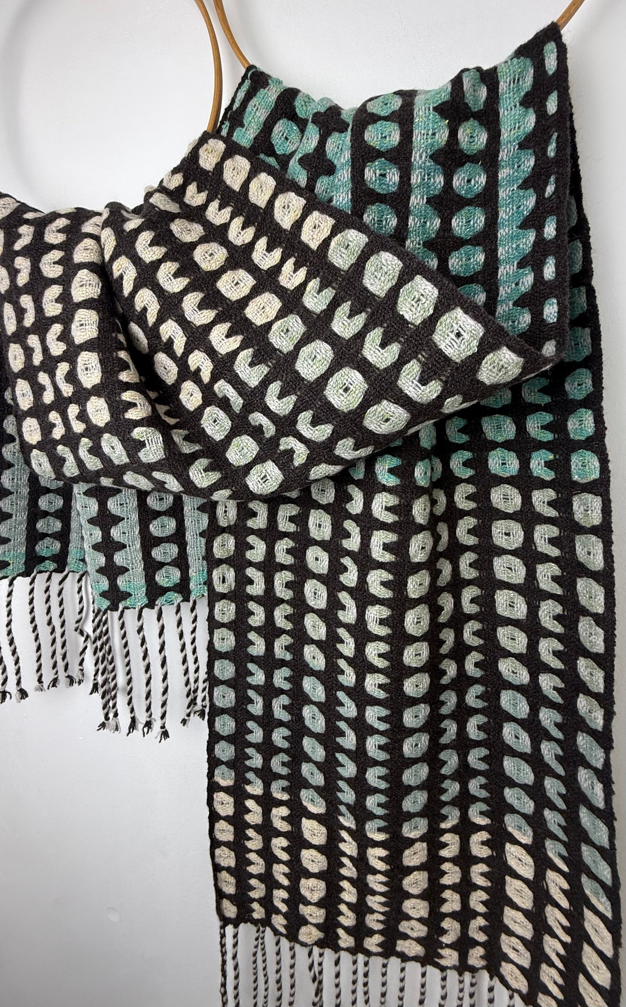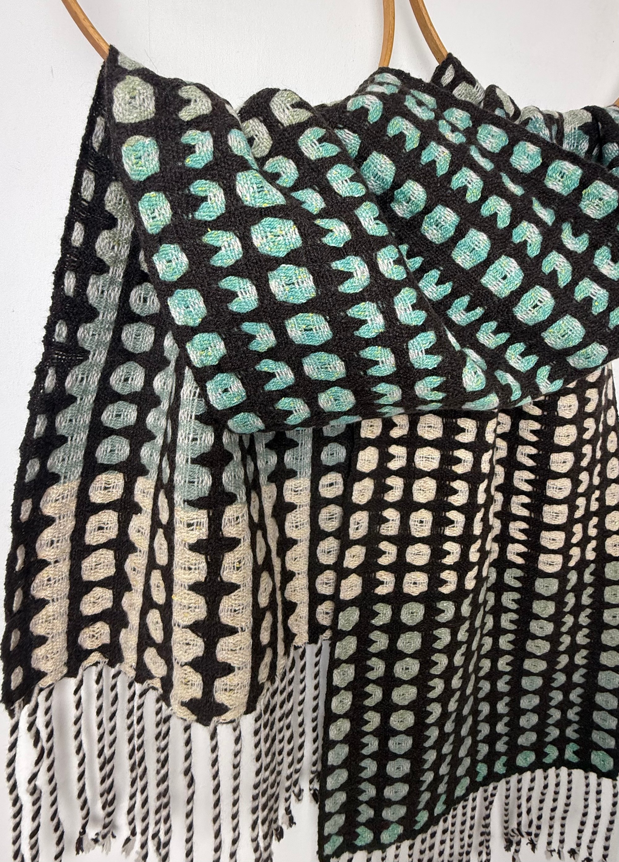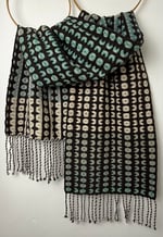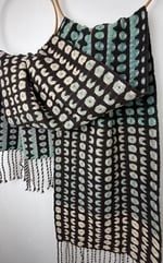 100% lambswool and silk scarf hand woven on my dobby loom in my garden studio overlooking the North Cornwall coastline.