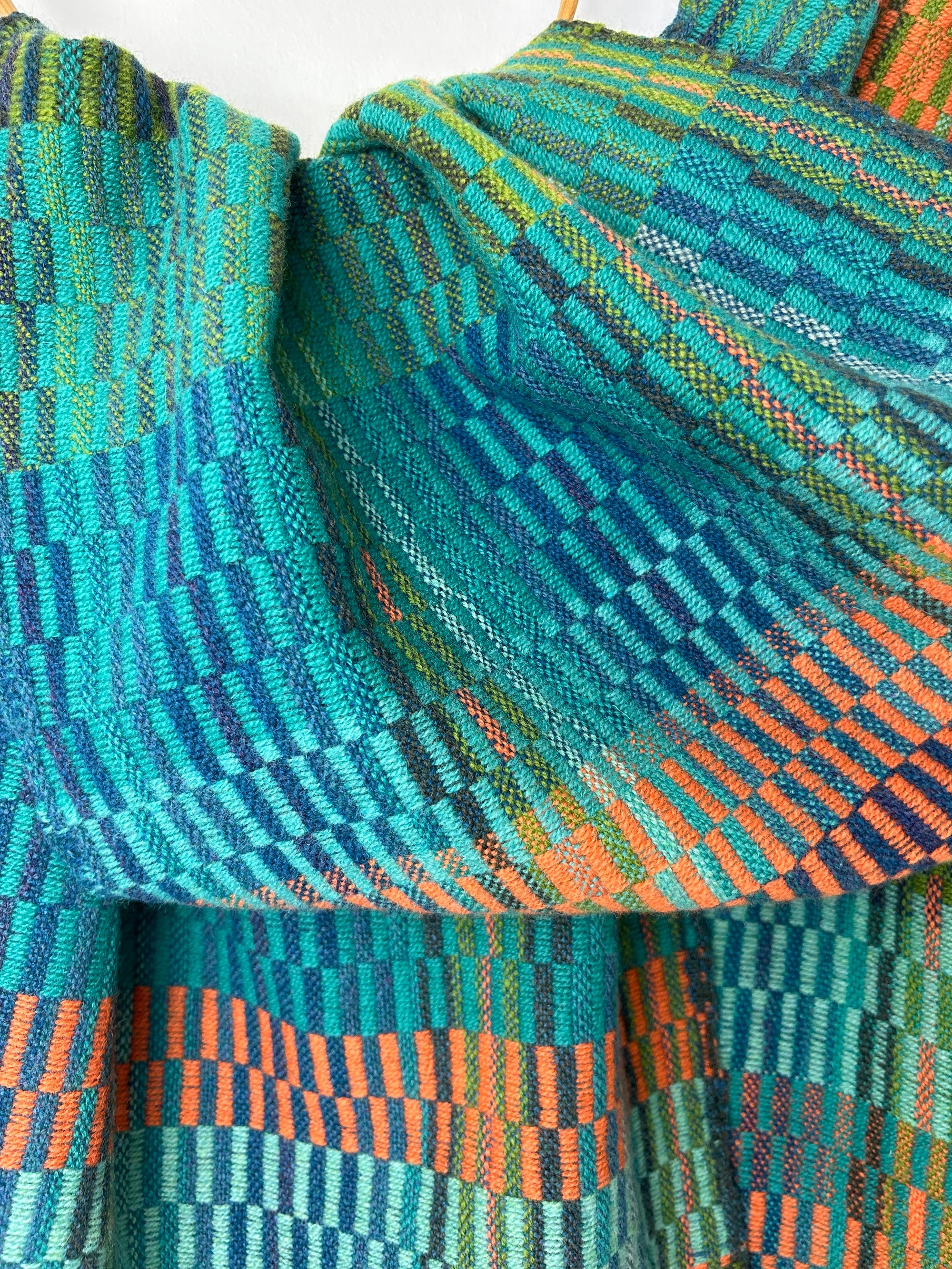 100% lambswool scarf hand woven on my preloved floor loom in my garden studio overlooking the North Cornwall coastline.