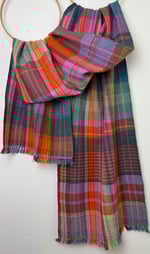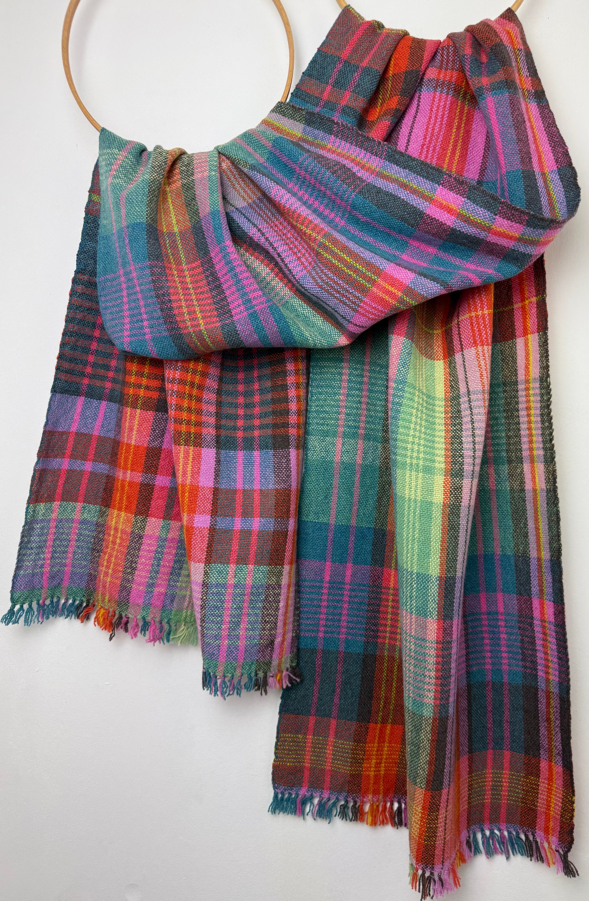 100% lambswool scarf/shawl, hand woven on my preloved floor loom in my garden studio overlooking the North Cornwall coastline.