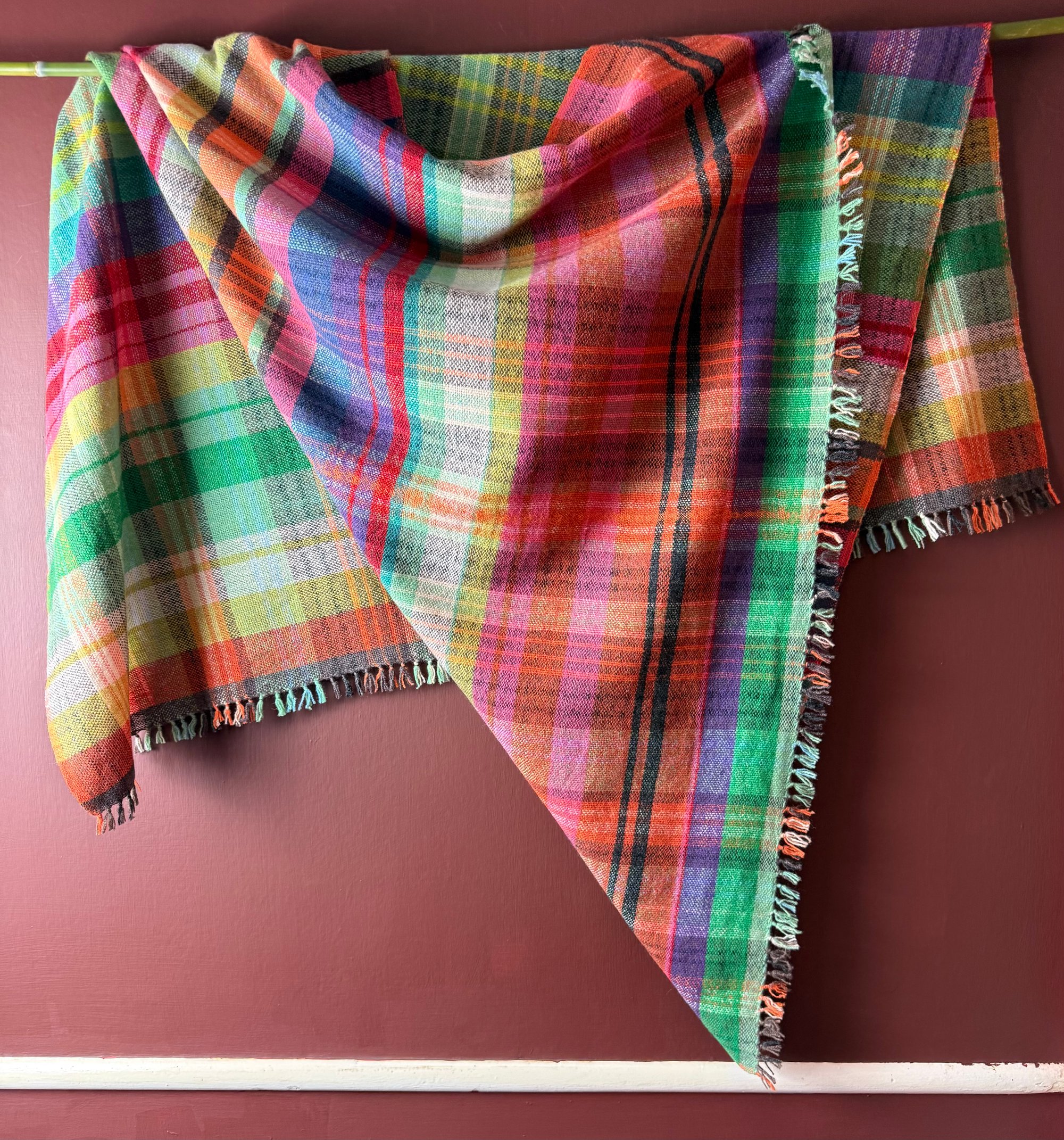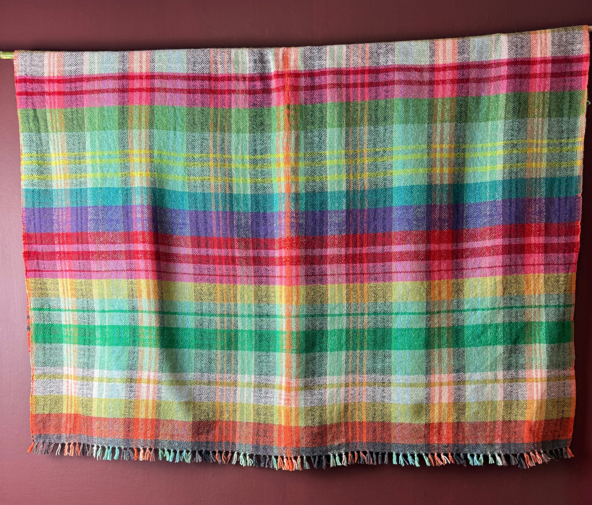 100% lambswool small blanket hand woven on my preloved floor loom in my garden studio overlooking the North Cornwall coastline.