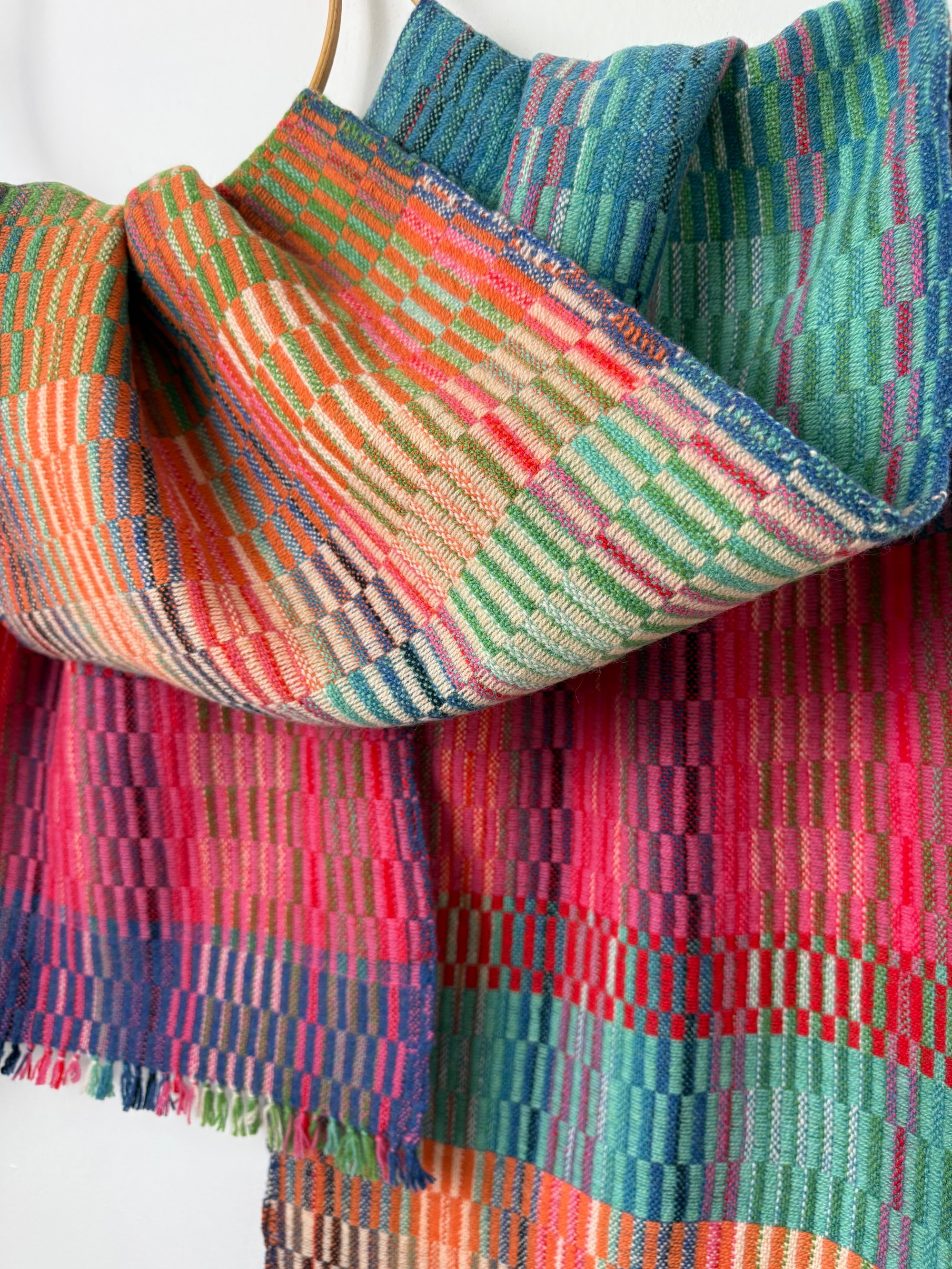 100% lambswool scarf/shawl, hand woven on my preloved floor loom in my garden studio overlooking the North Cornwall coastline.