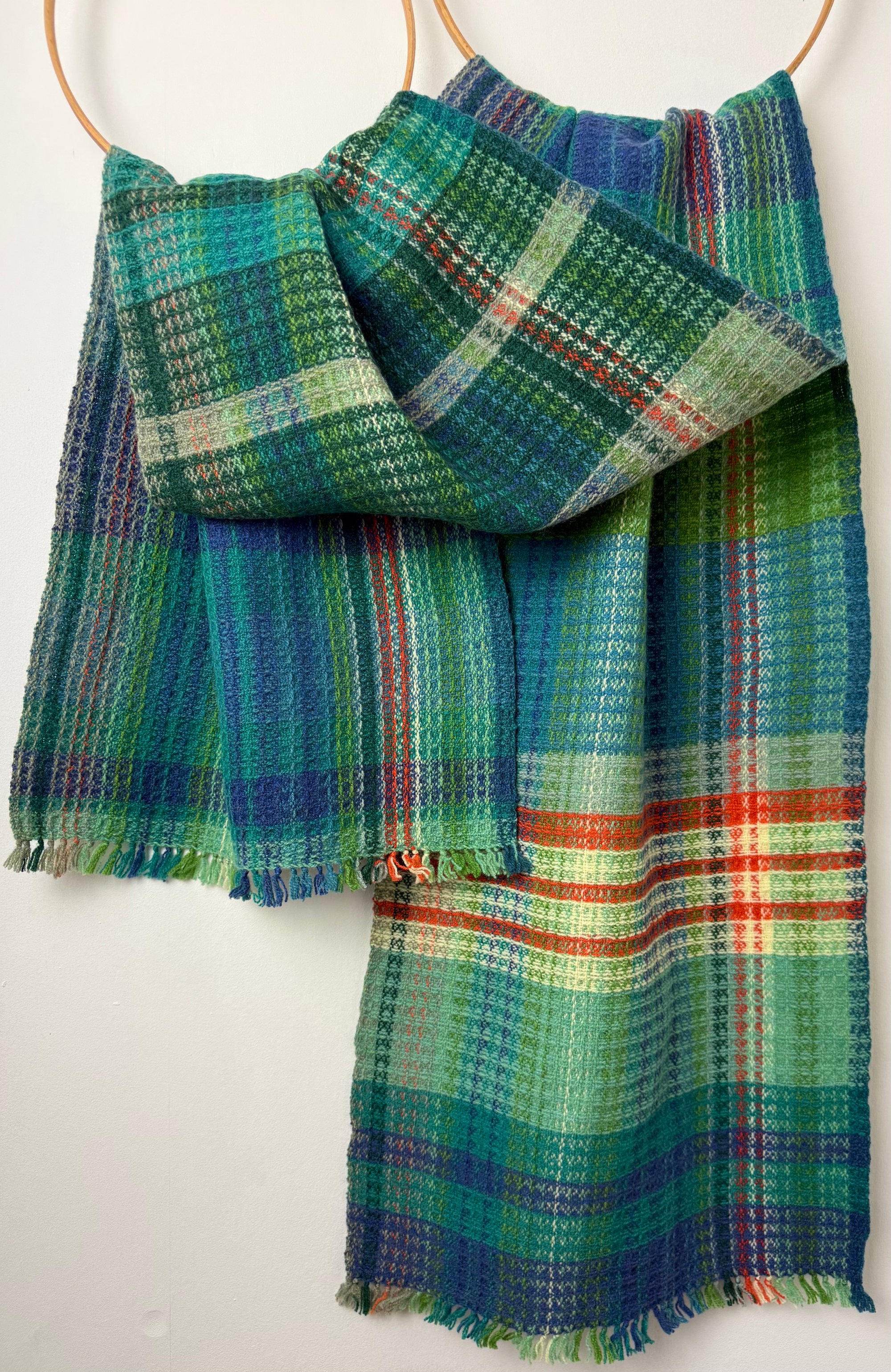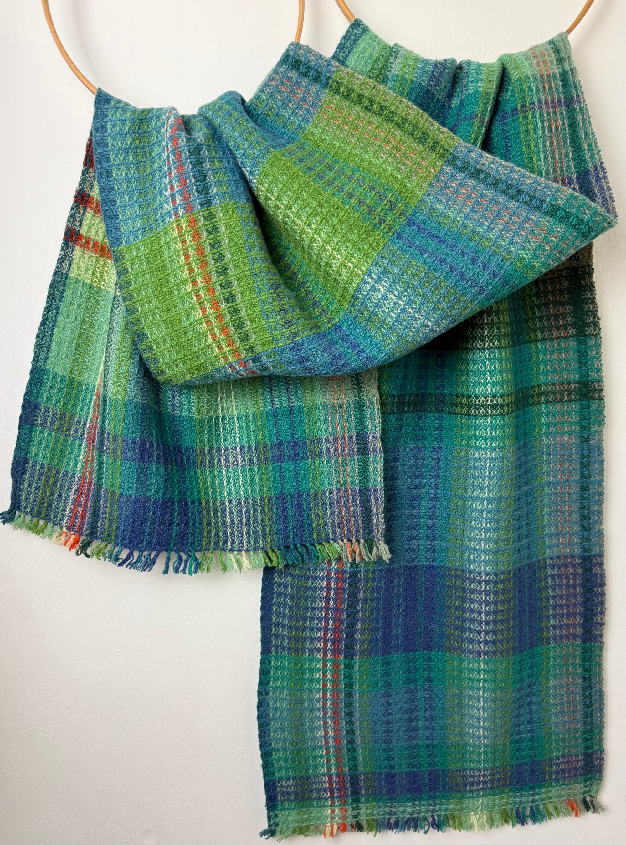 100% lambswool scarf hand woven on my preloved floor loom in my garden studio overlooking the North Cornwall coastline.