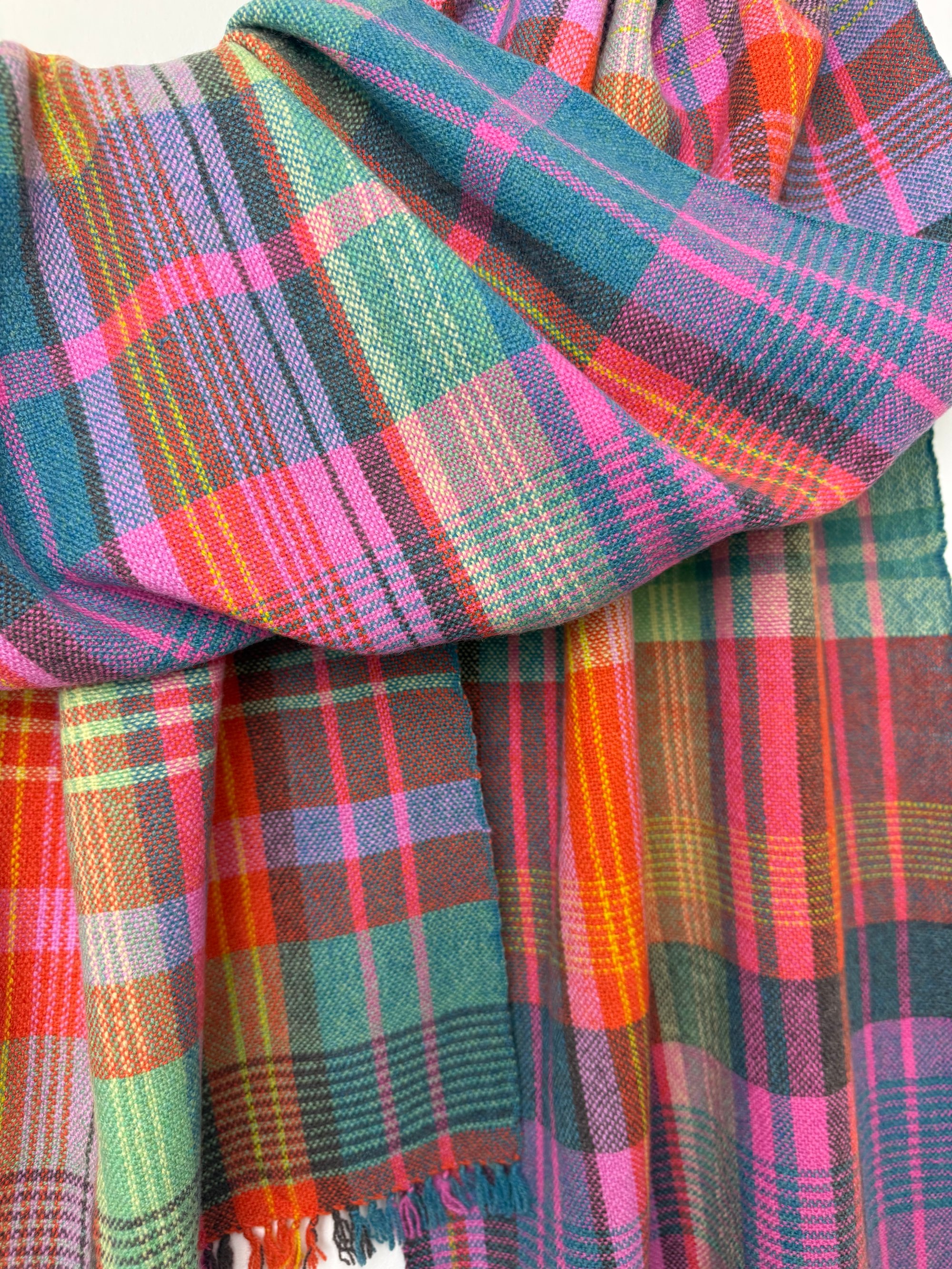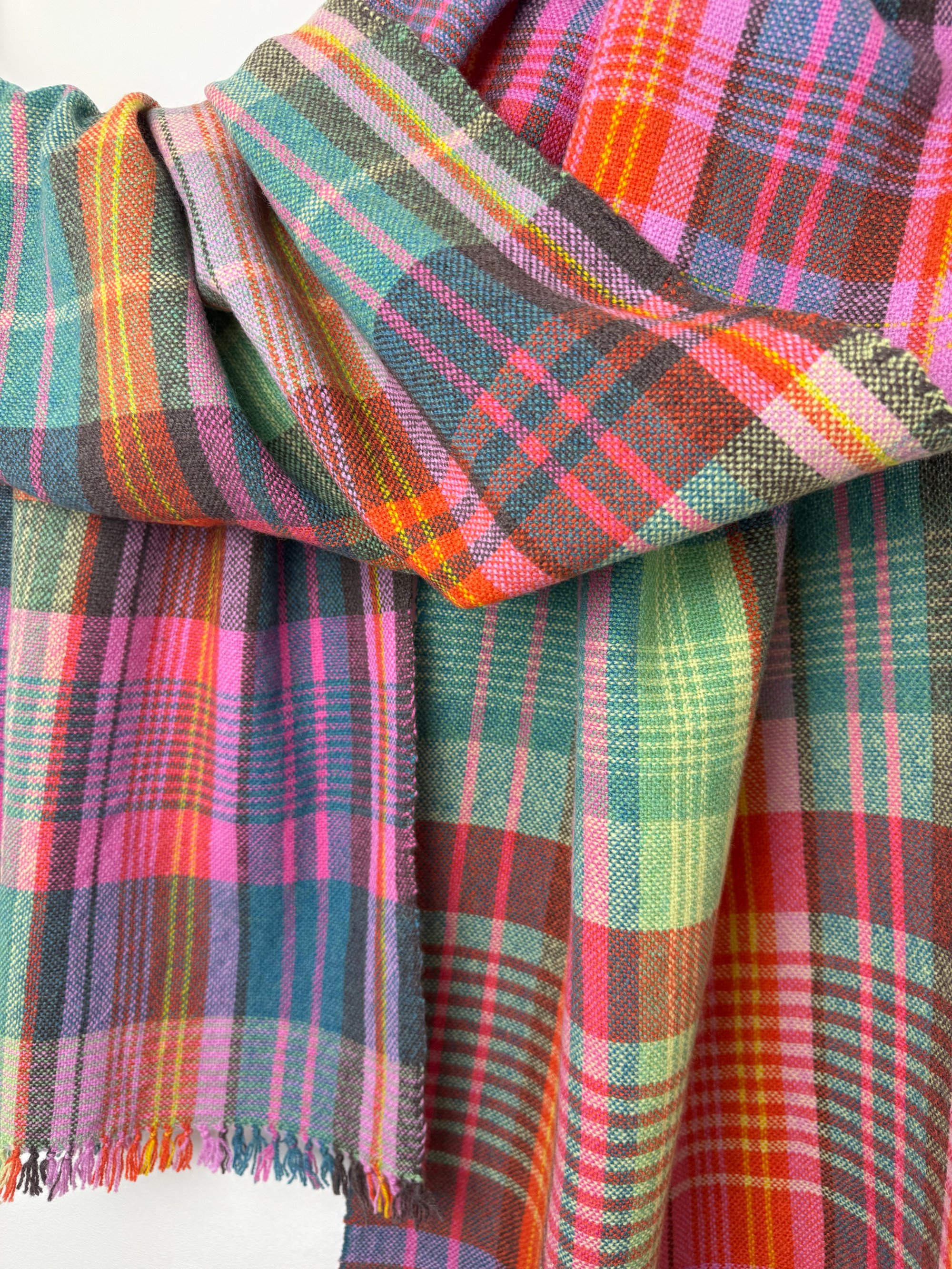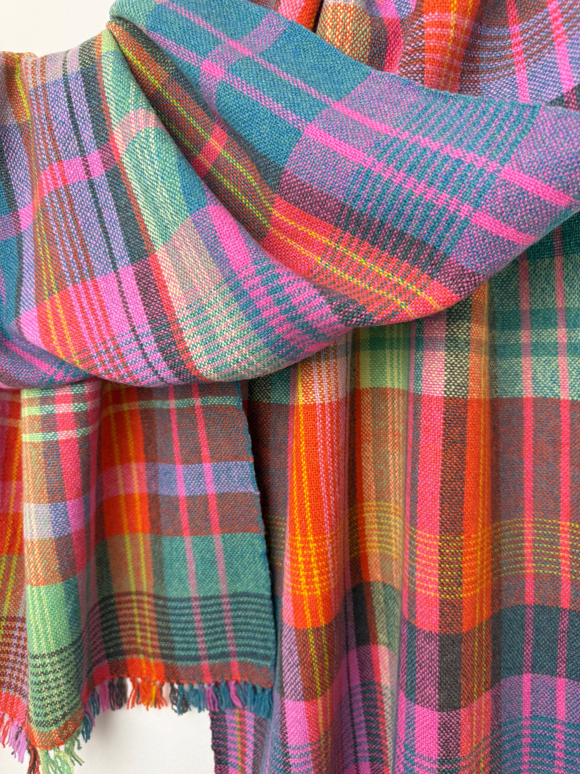 100% lambswool scarf/shawl, hand woven on my preloved floor loom in my garden studio overlooking the North Cornwall coastline.