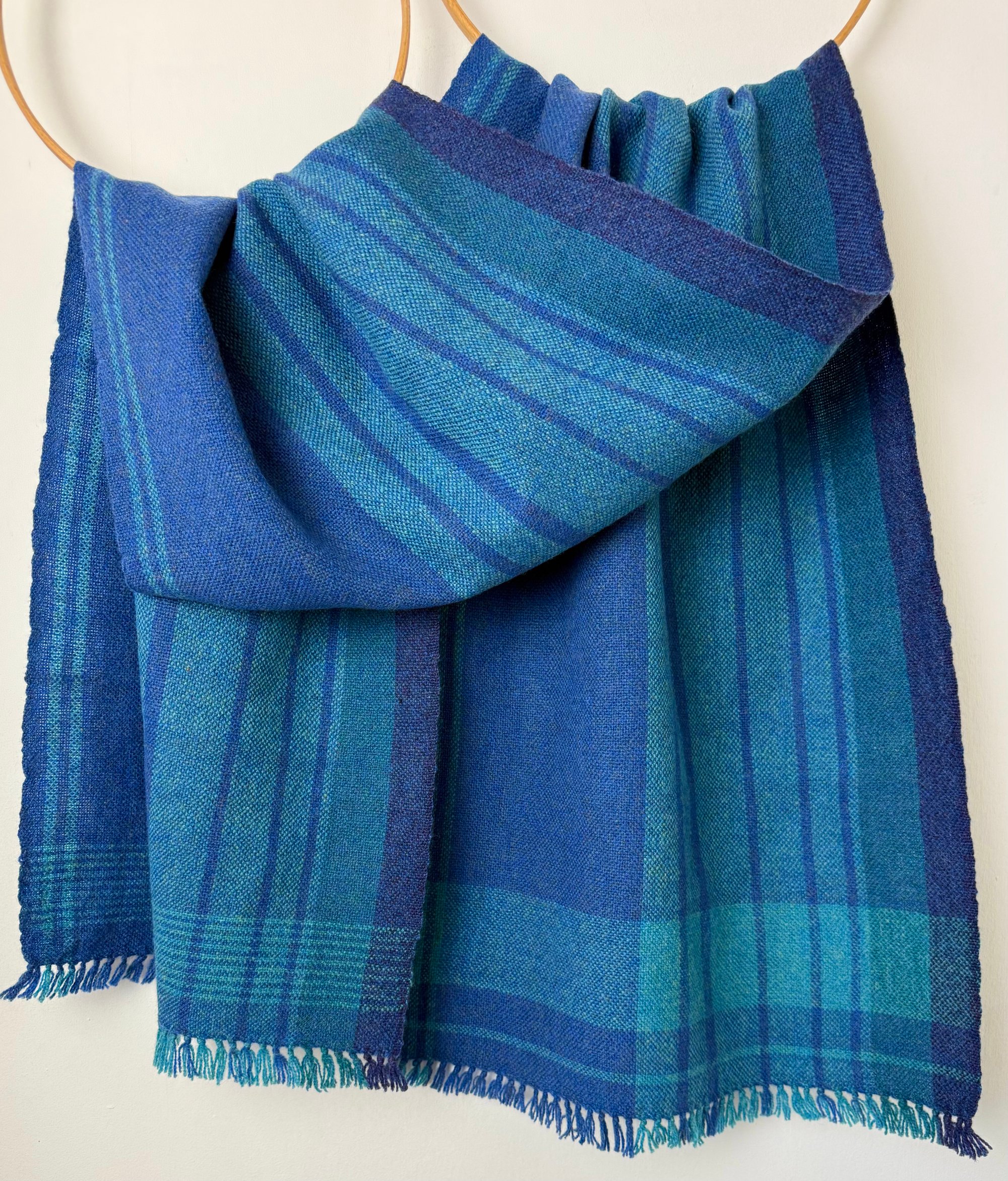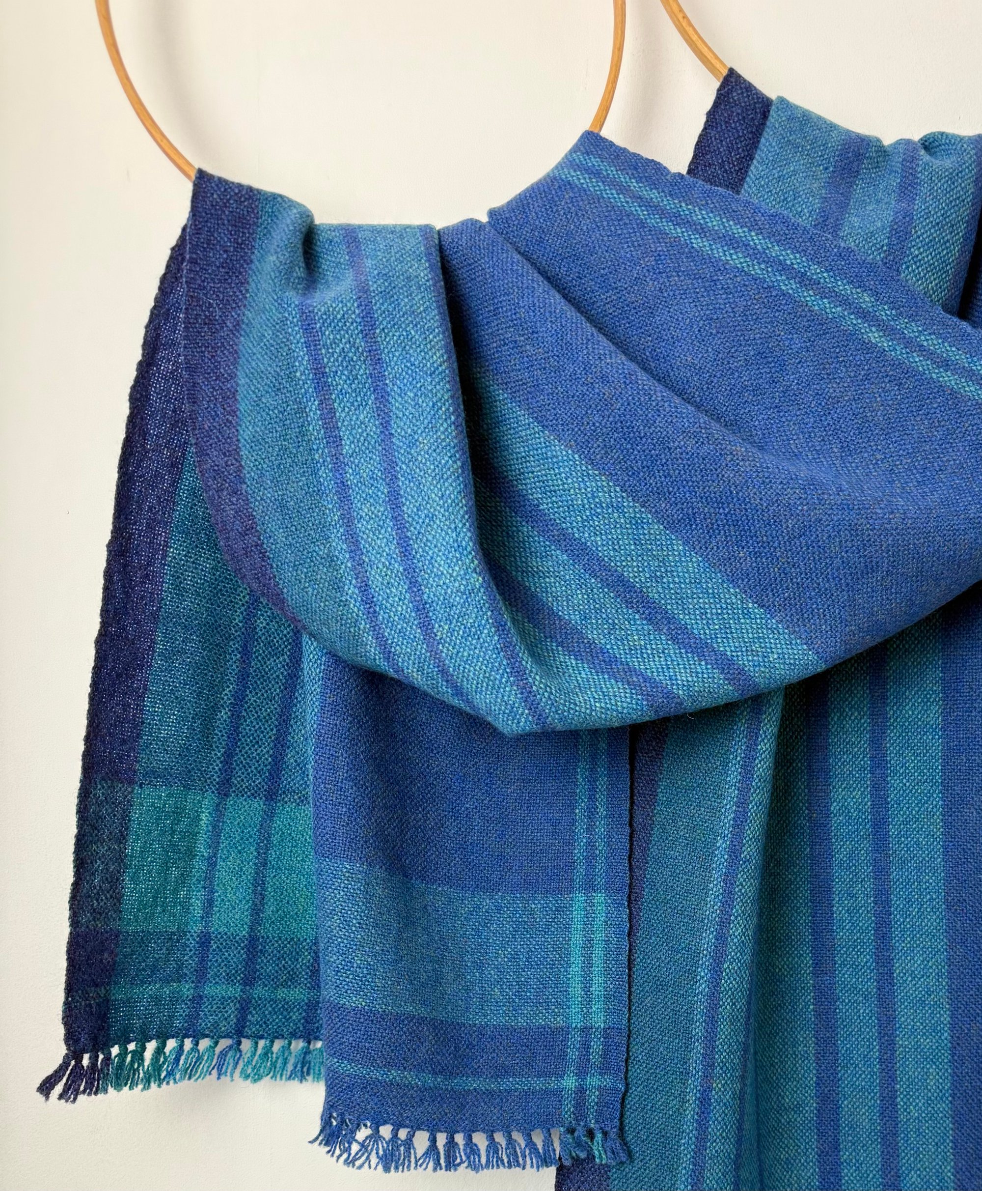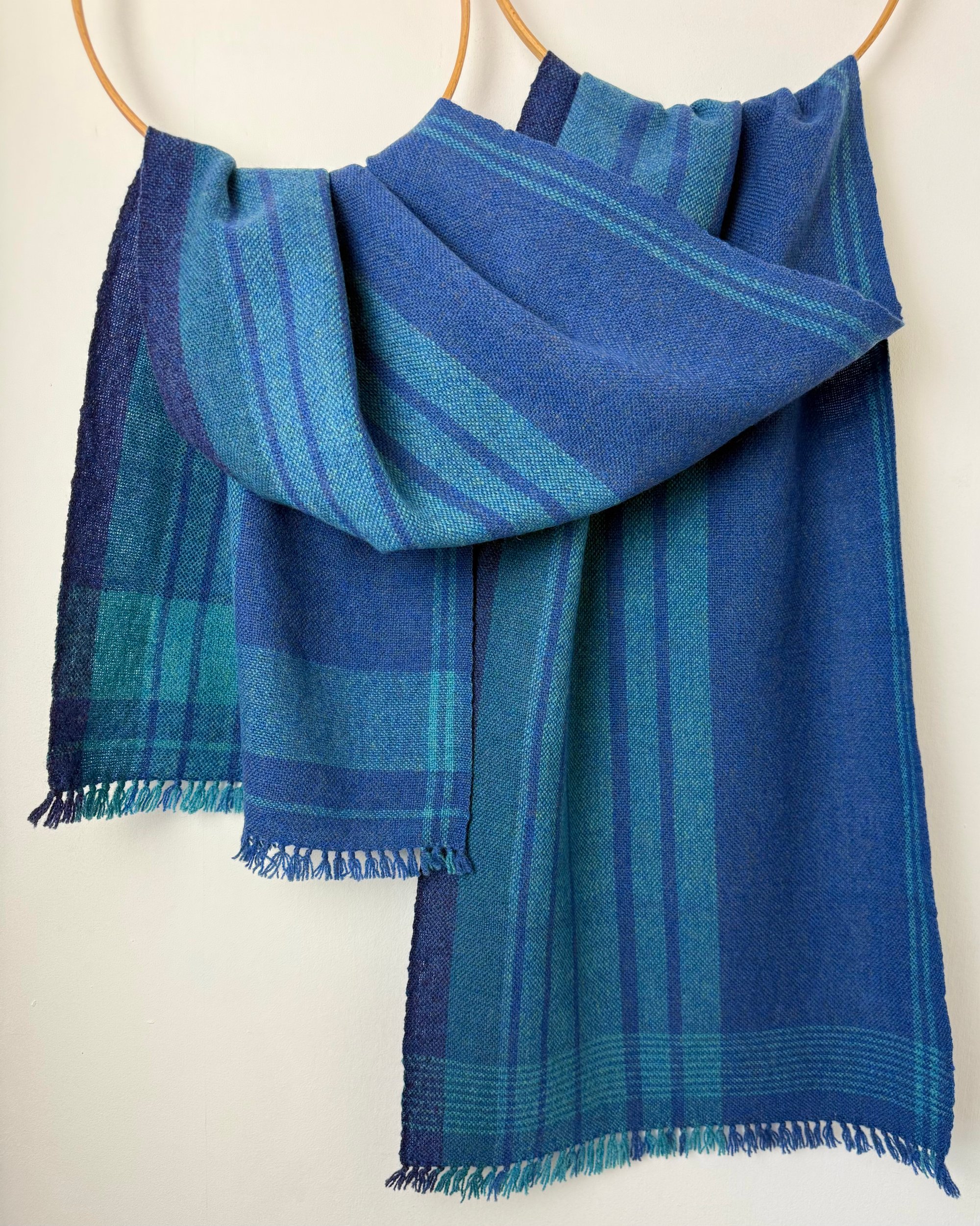 100% lambswool scarf hand woven on my preloved floor loom in my garden studio overlooking the North Cornwall coastline.