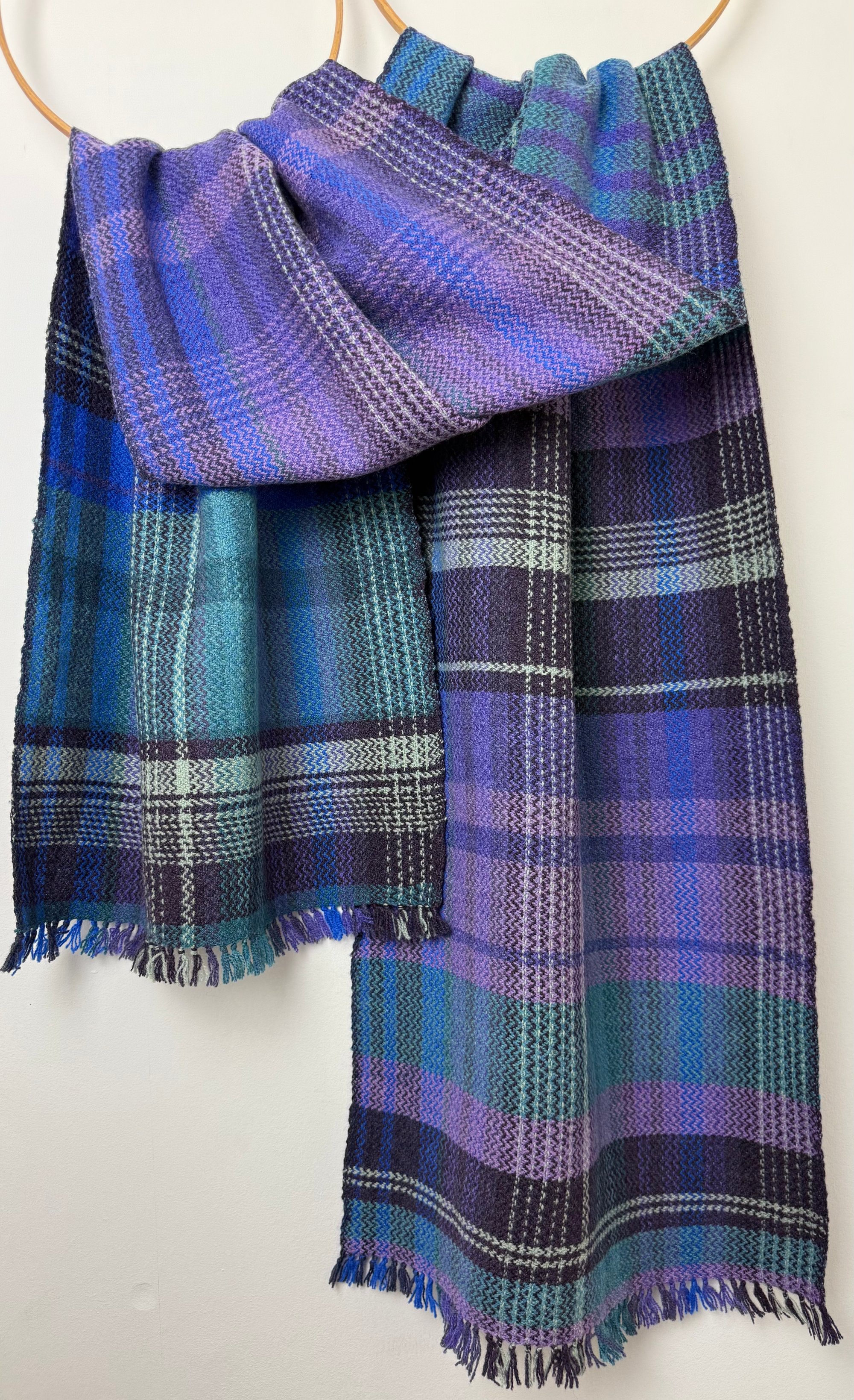 100% lambswool scarf hand woven on my preloved floor loom in my garden studio overlooking the North Cornwall coastline.