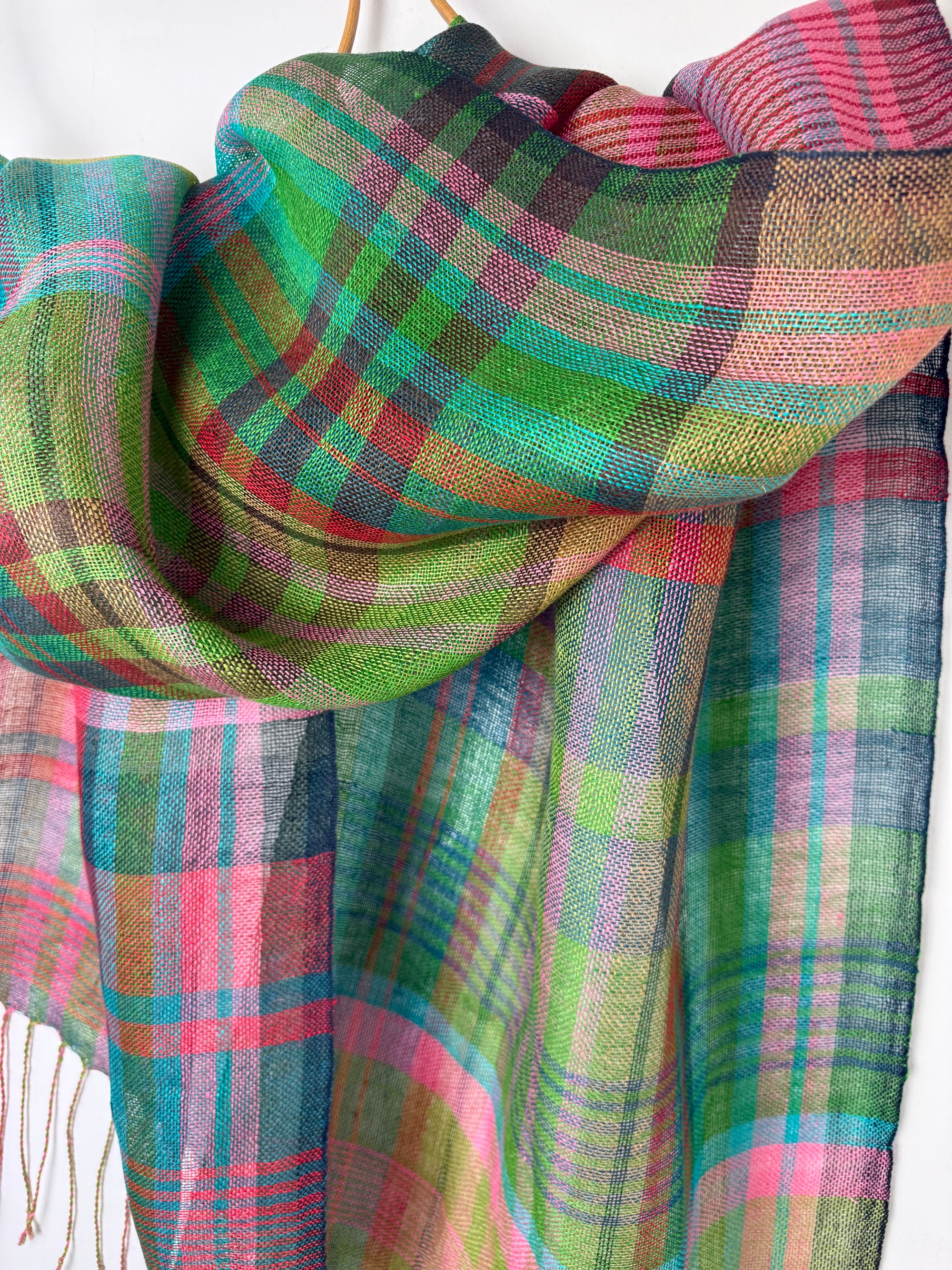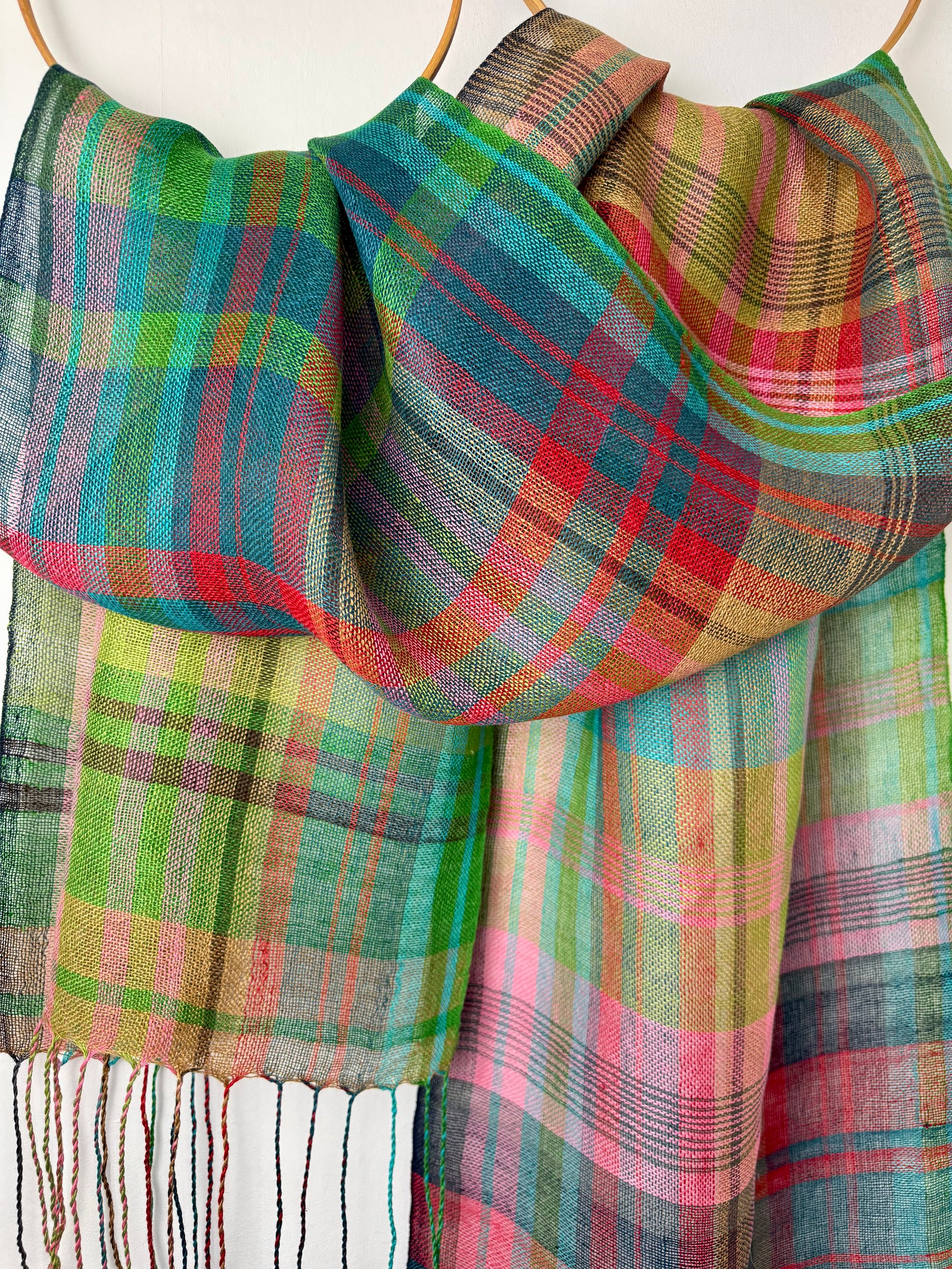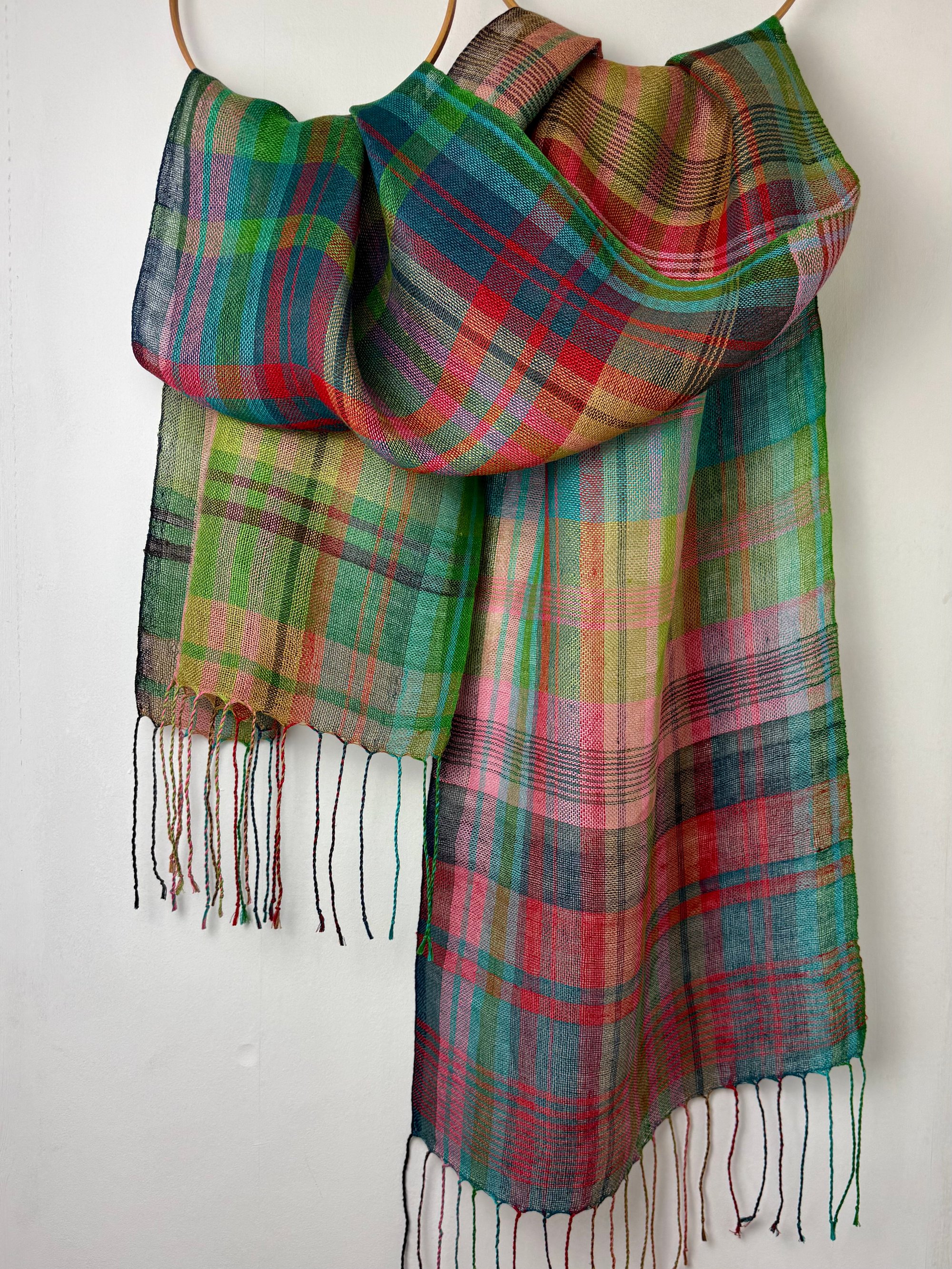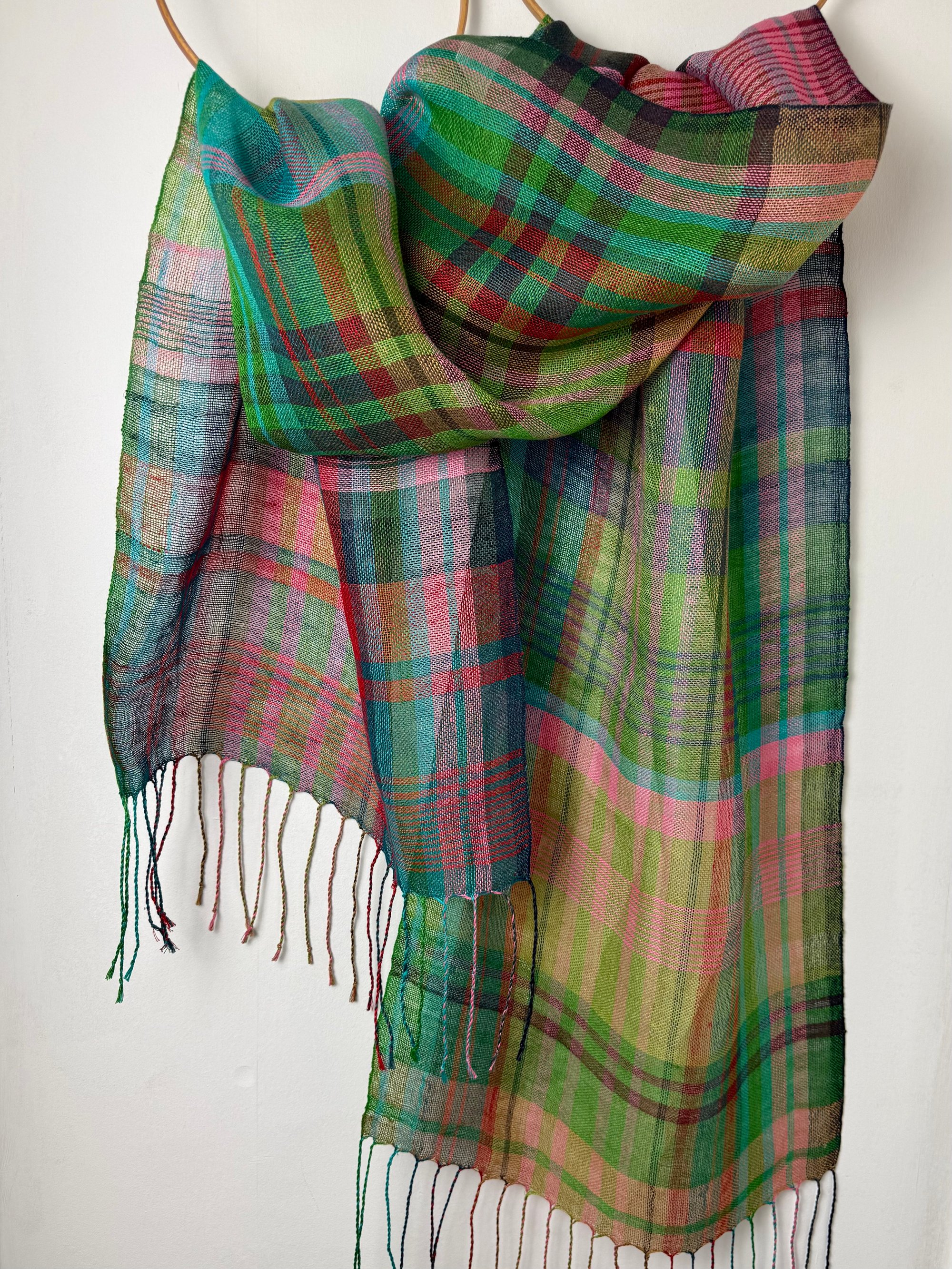 100% linen scarf/shawl hand woven on my preloved floor loom in my garden studio overlooking the North Cornwall coastline.