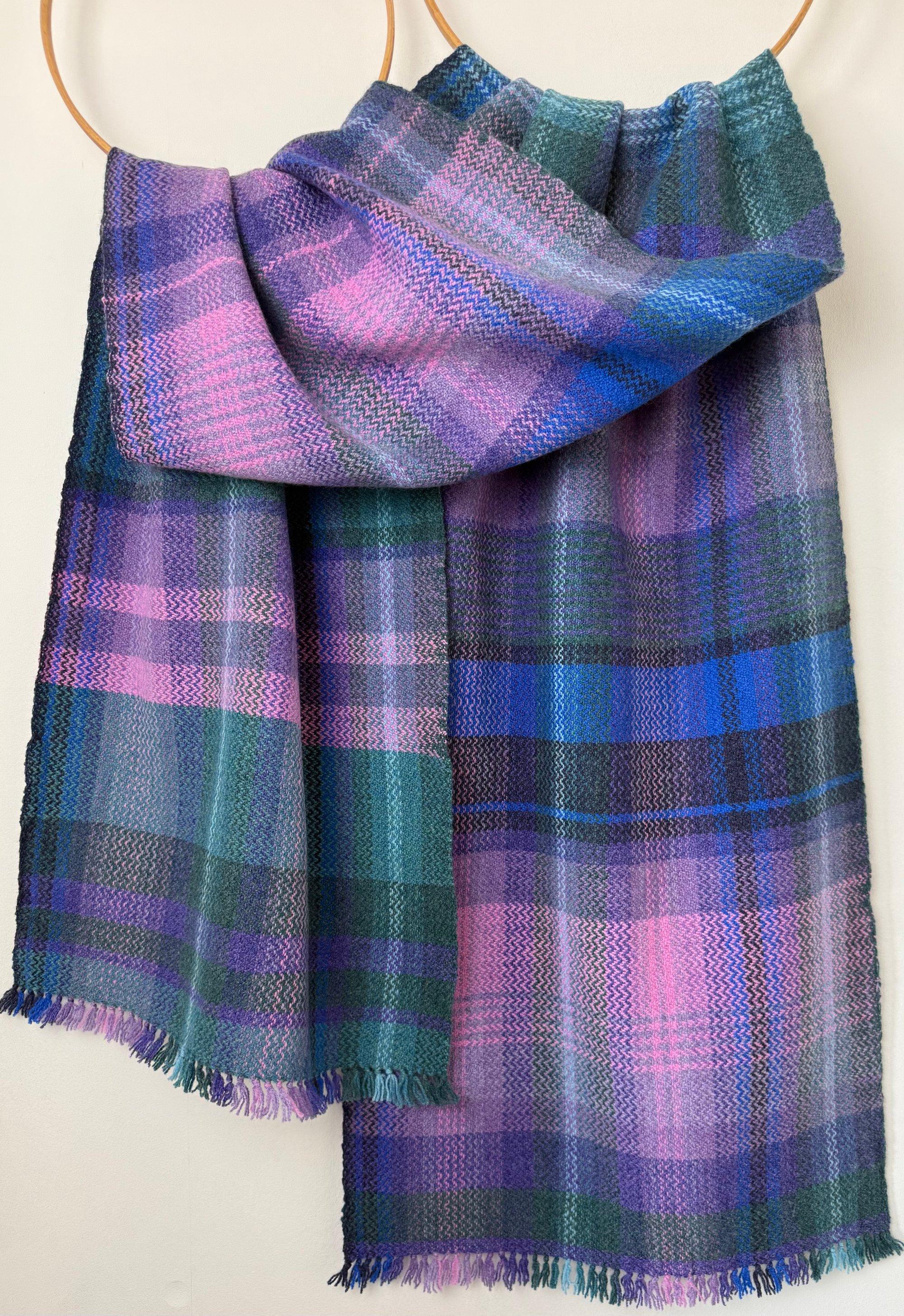 The combination of blues and purples together make this a 'must have' scarf for anyone who loves this colour way.