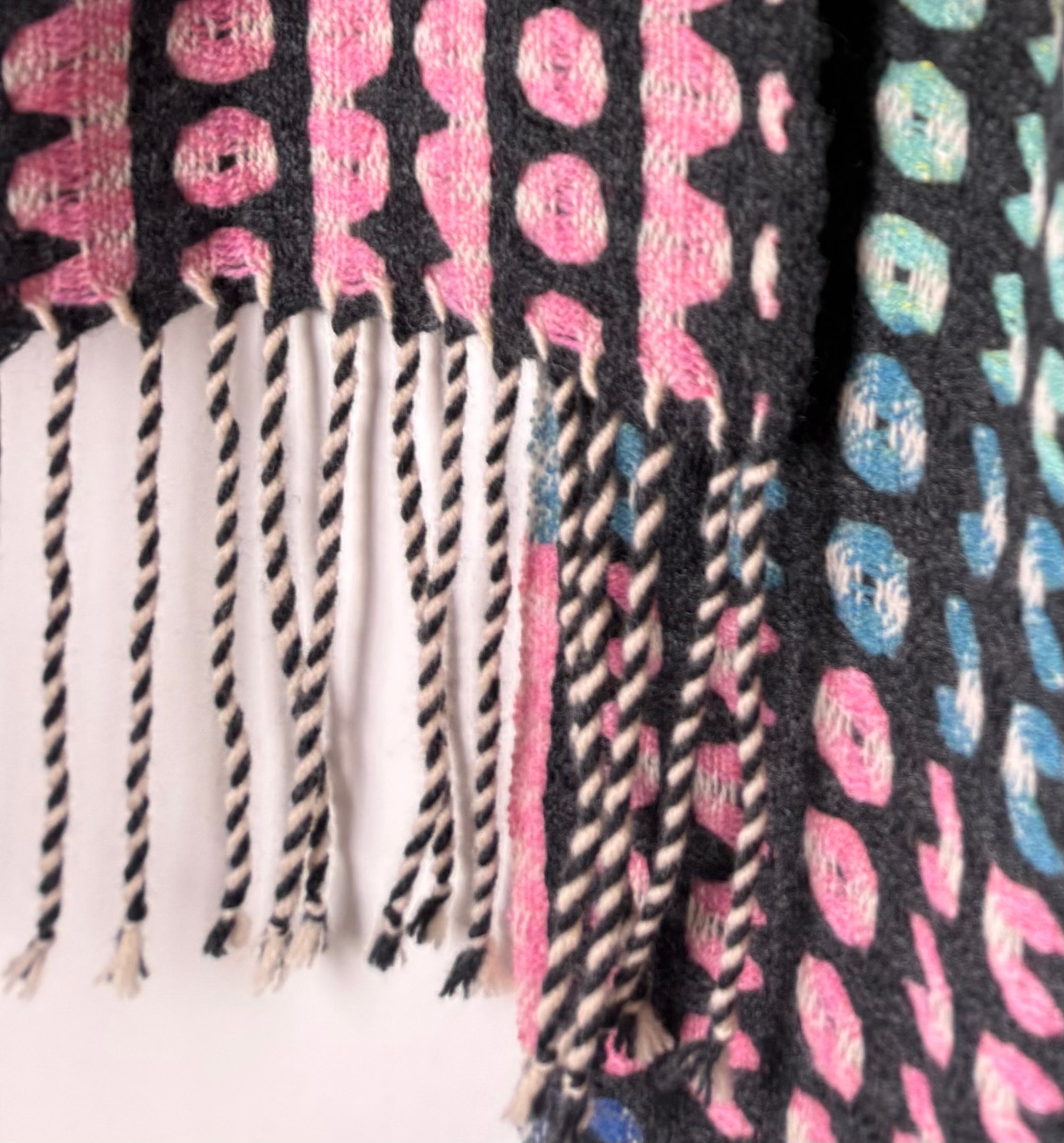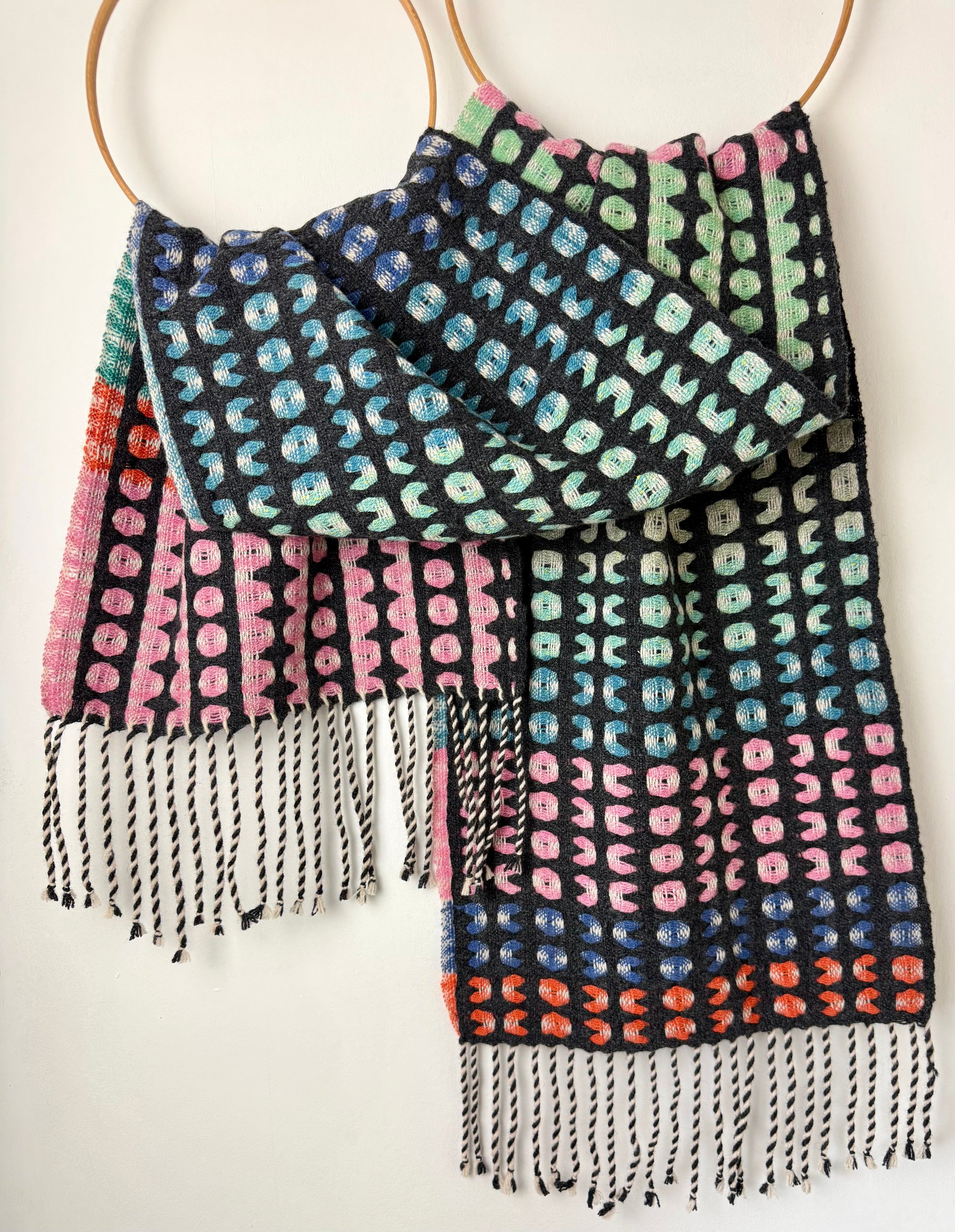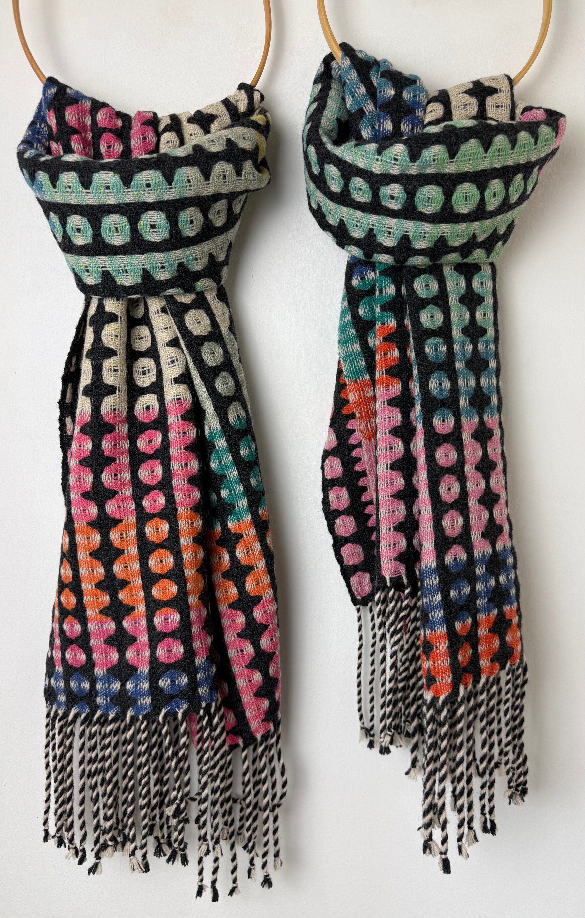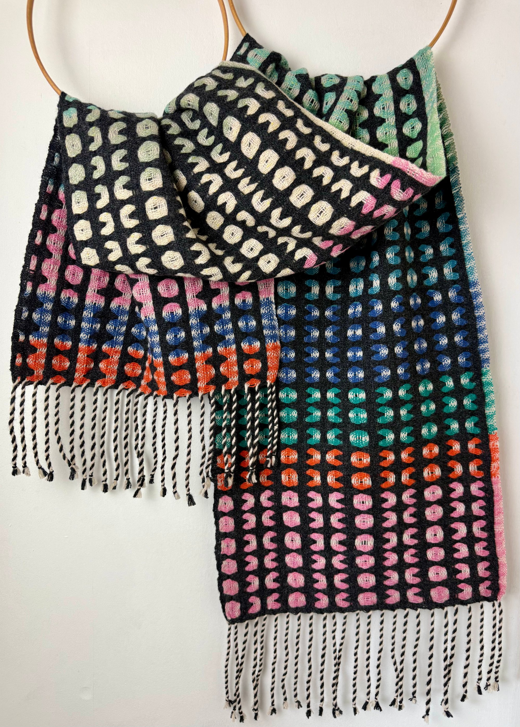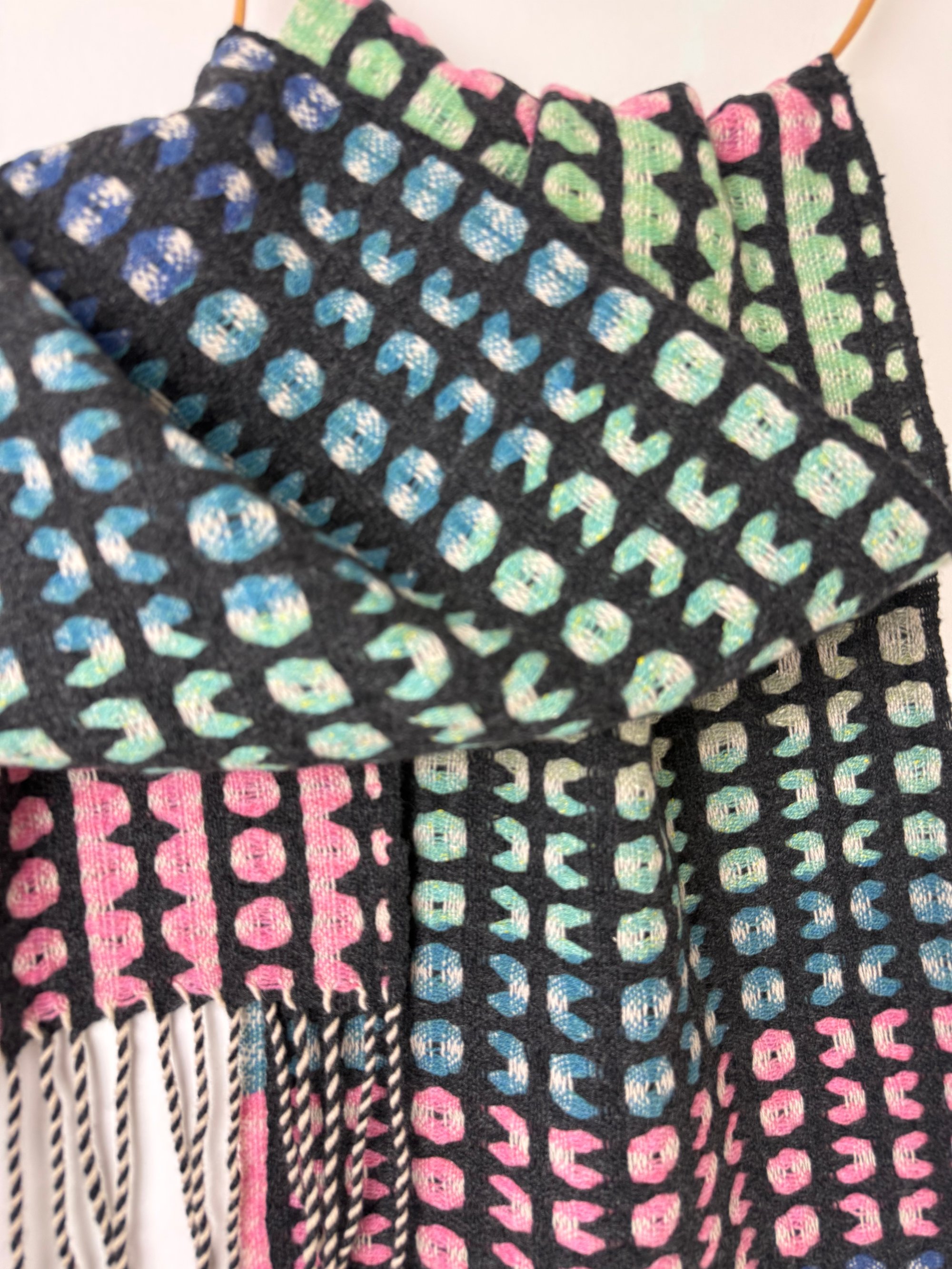 100% lambswool and silk scarf hand woven on my dobby loom in my garden studio overlooking the North Cornwall coastline.