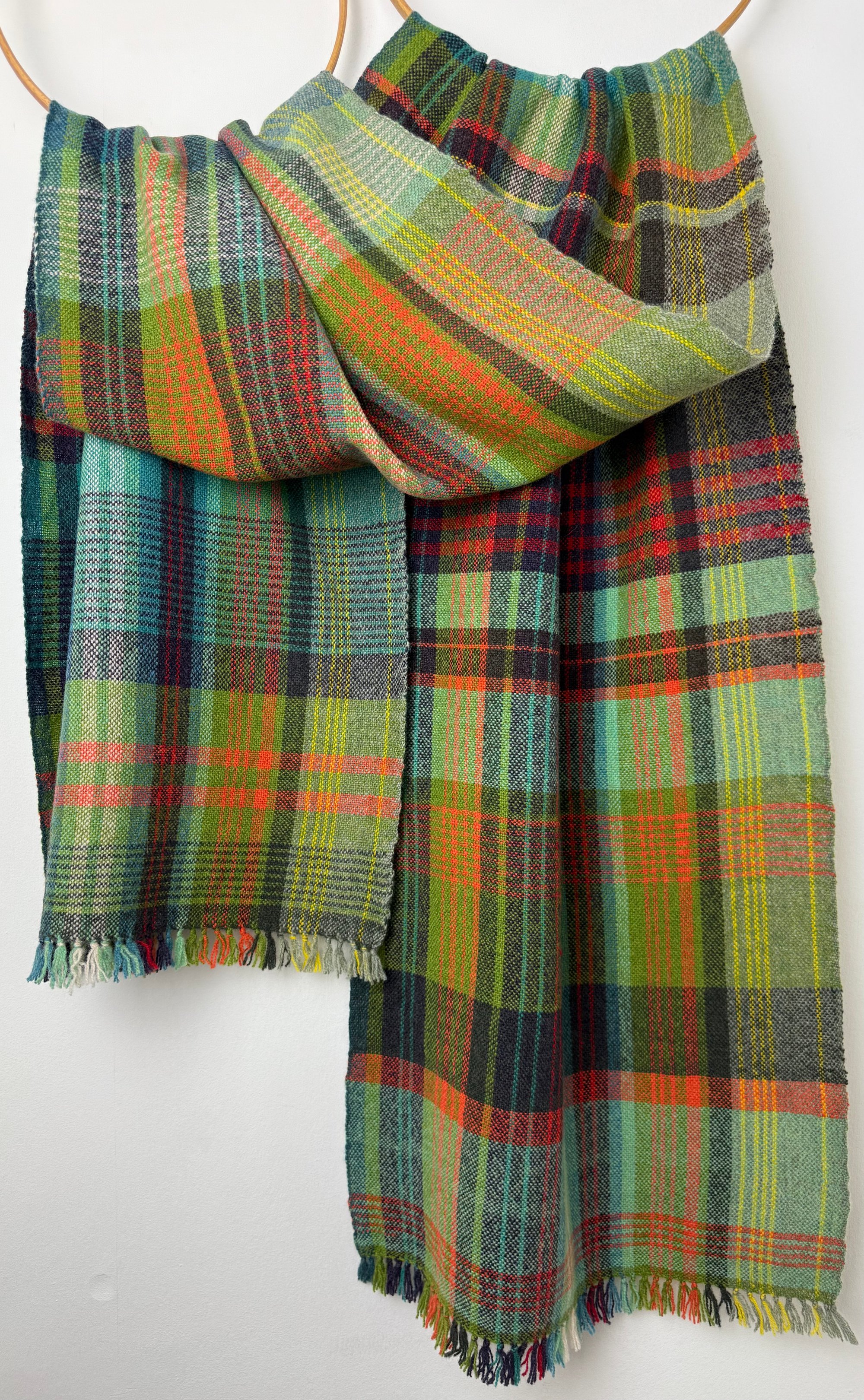 100% lambswool scarf hand woven on my preloved floor loom in my garden studio overlooking the North Cornwall coastline.