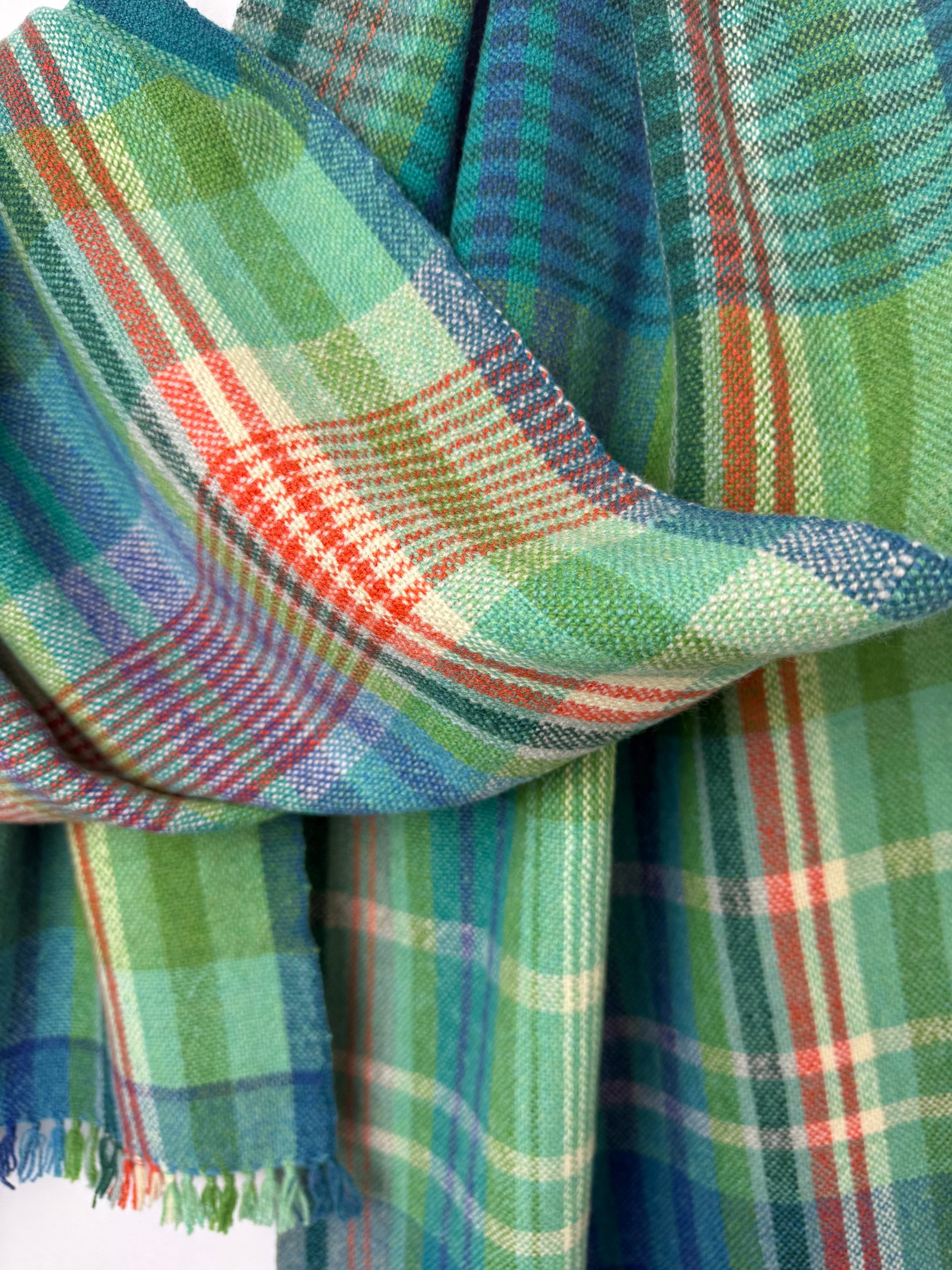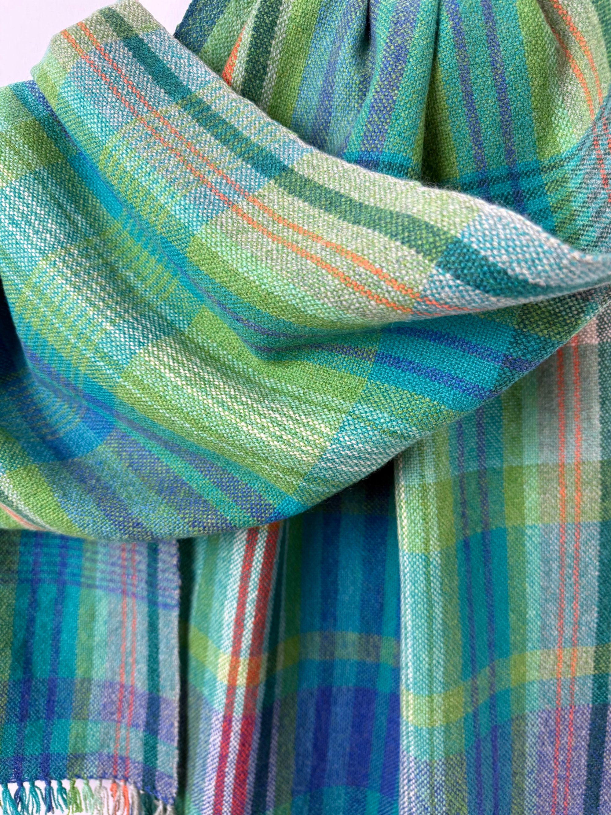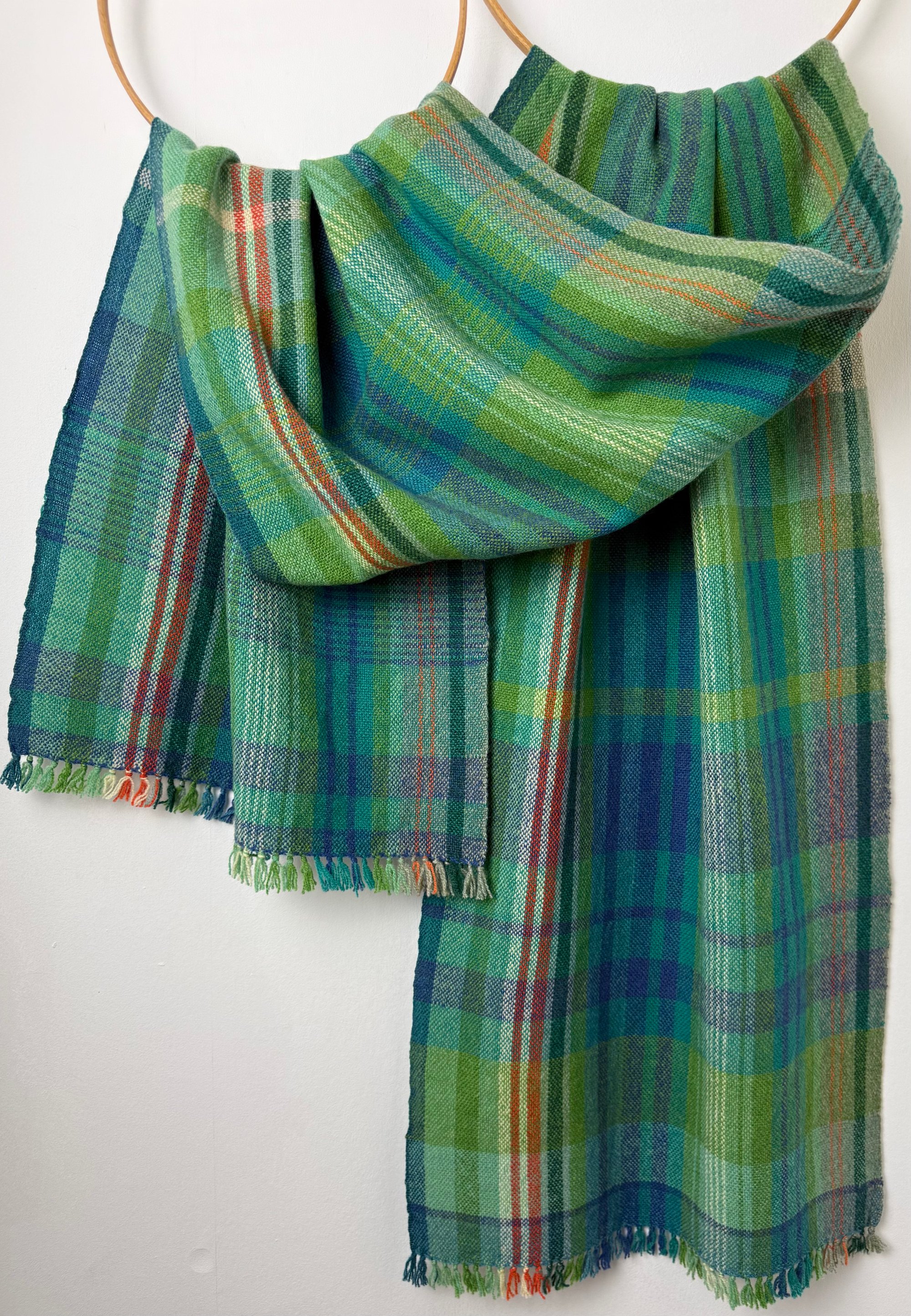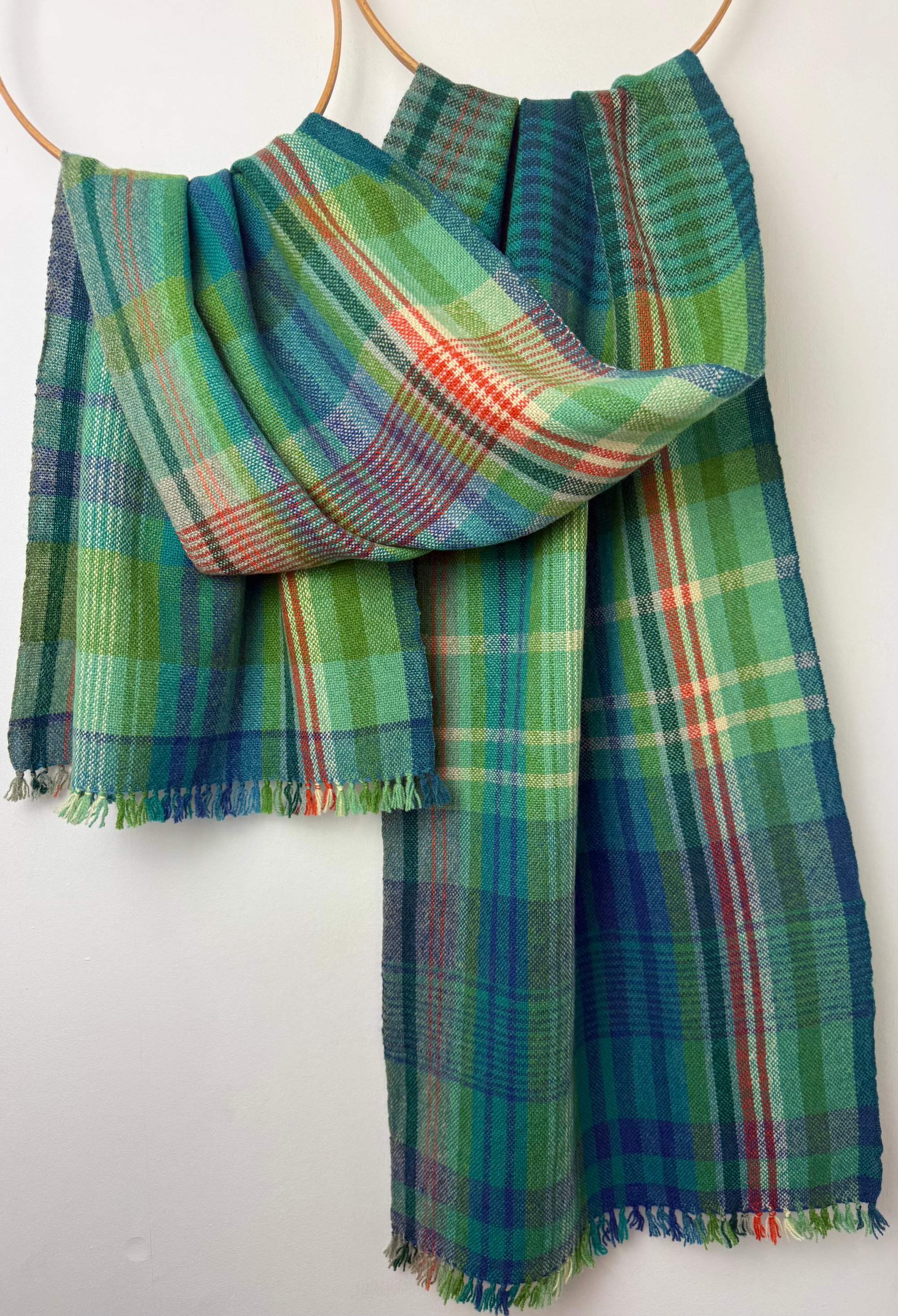 100% lambswool scarf/shawl, hand woven on my preloved floor loom in my garden studio overlooking the North Cornwall coastline.