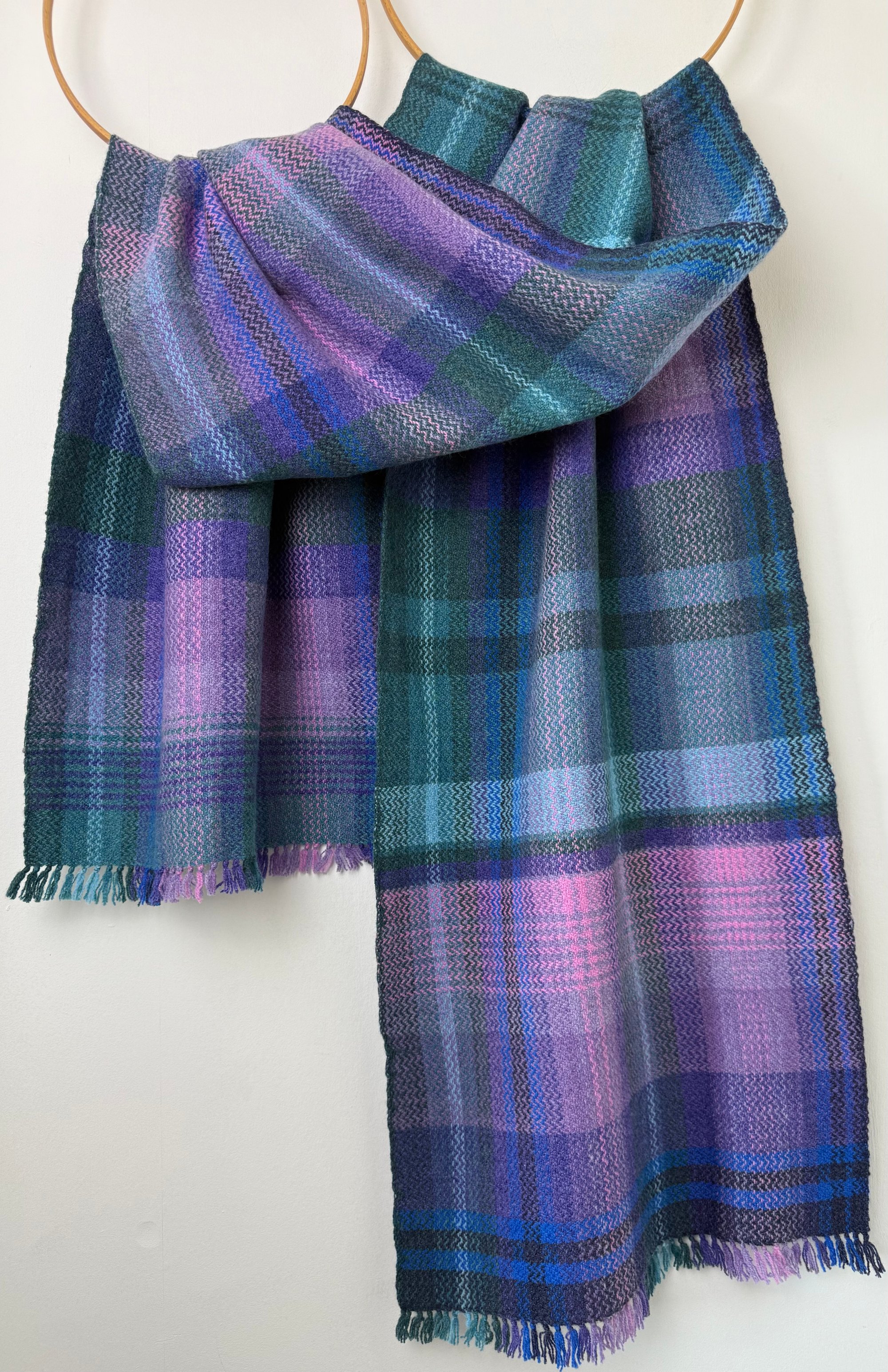 The combination of blues and purples together make this a 'must have' scarf for anyone who loves this colour way.