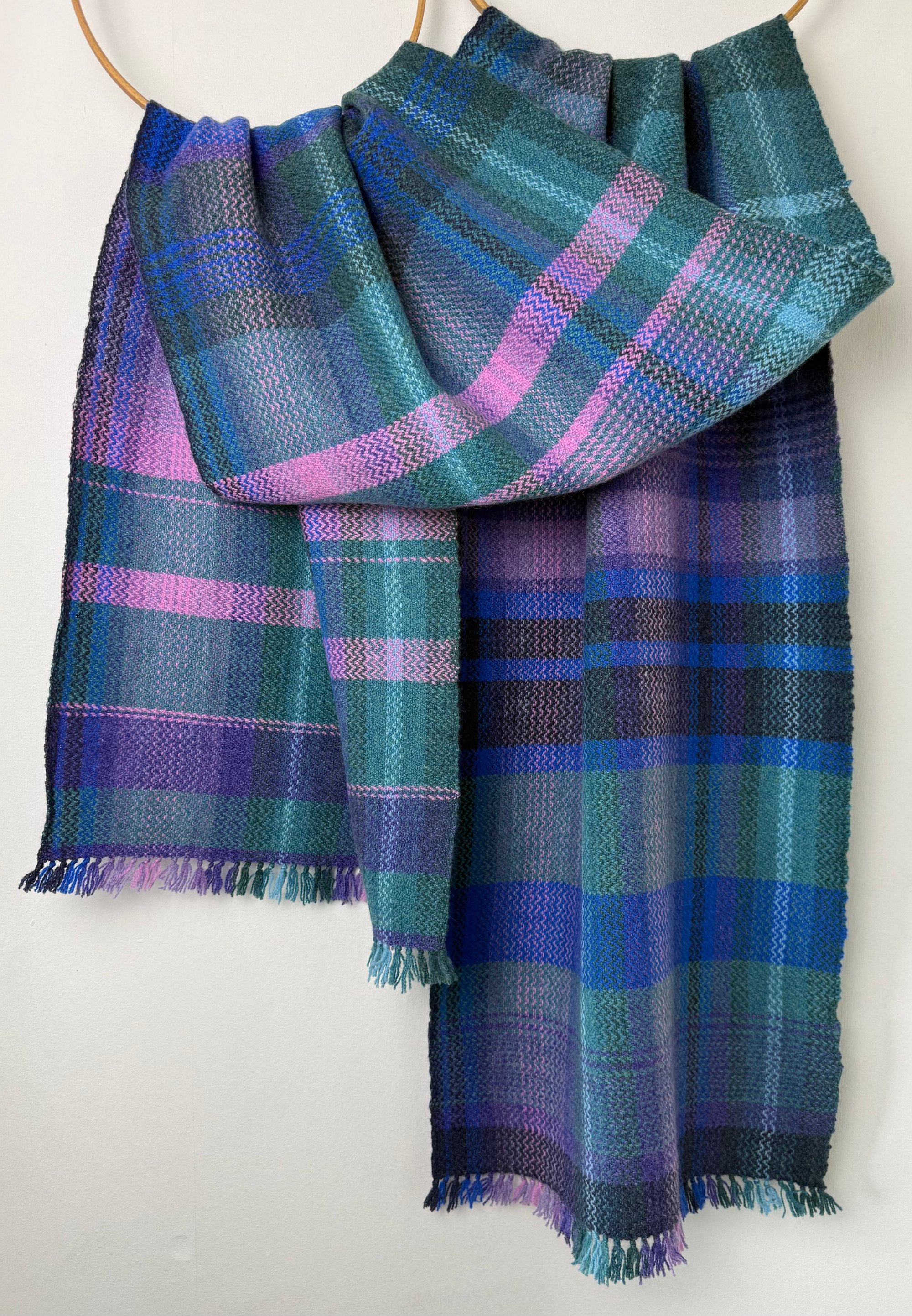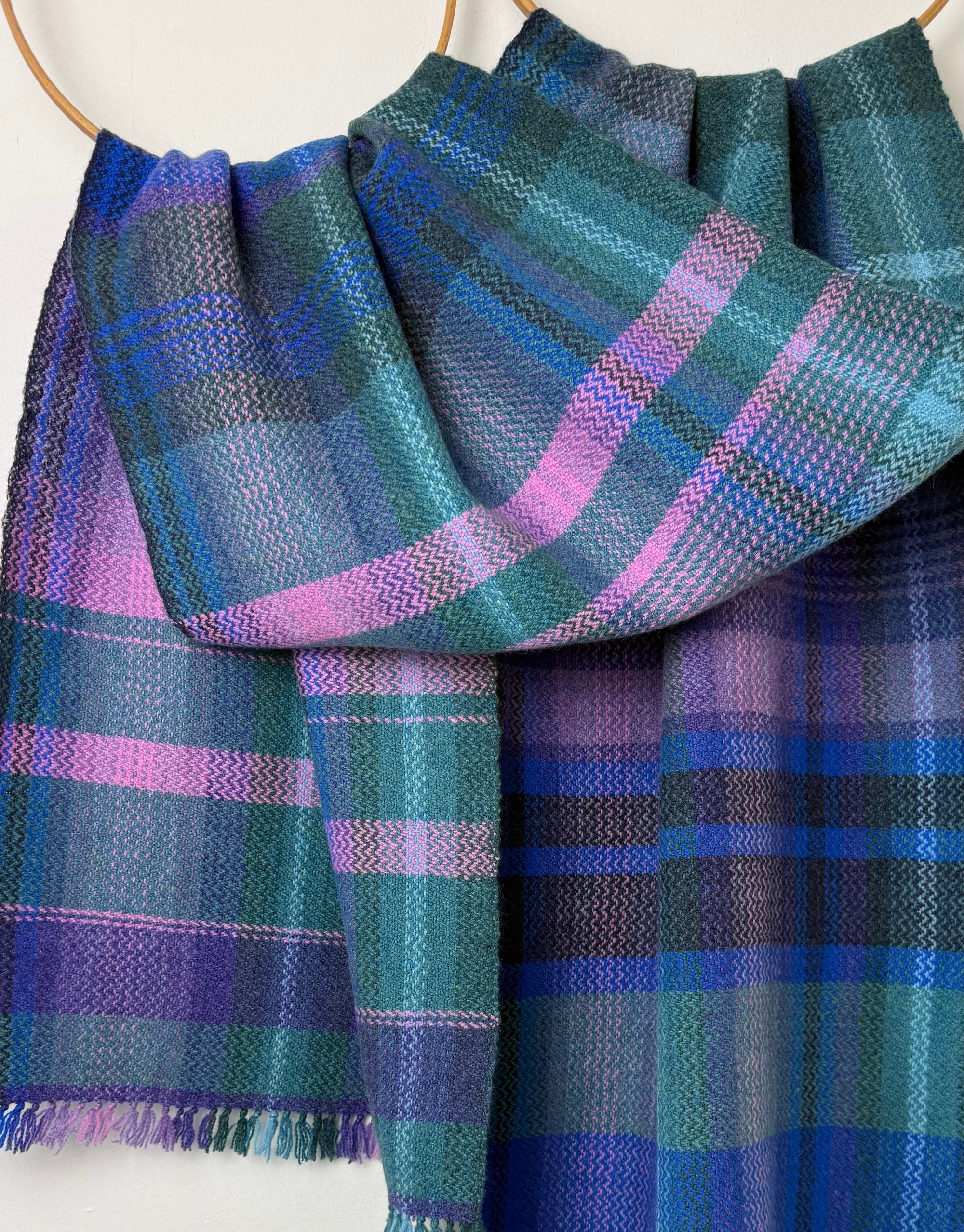 100% lambswool scarf hand woven on my preloved floor loom in my garden studio overlooking the North Cornwall coastline.