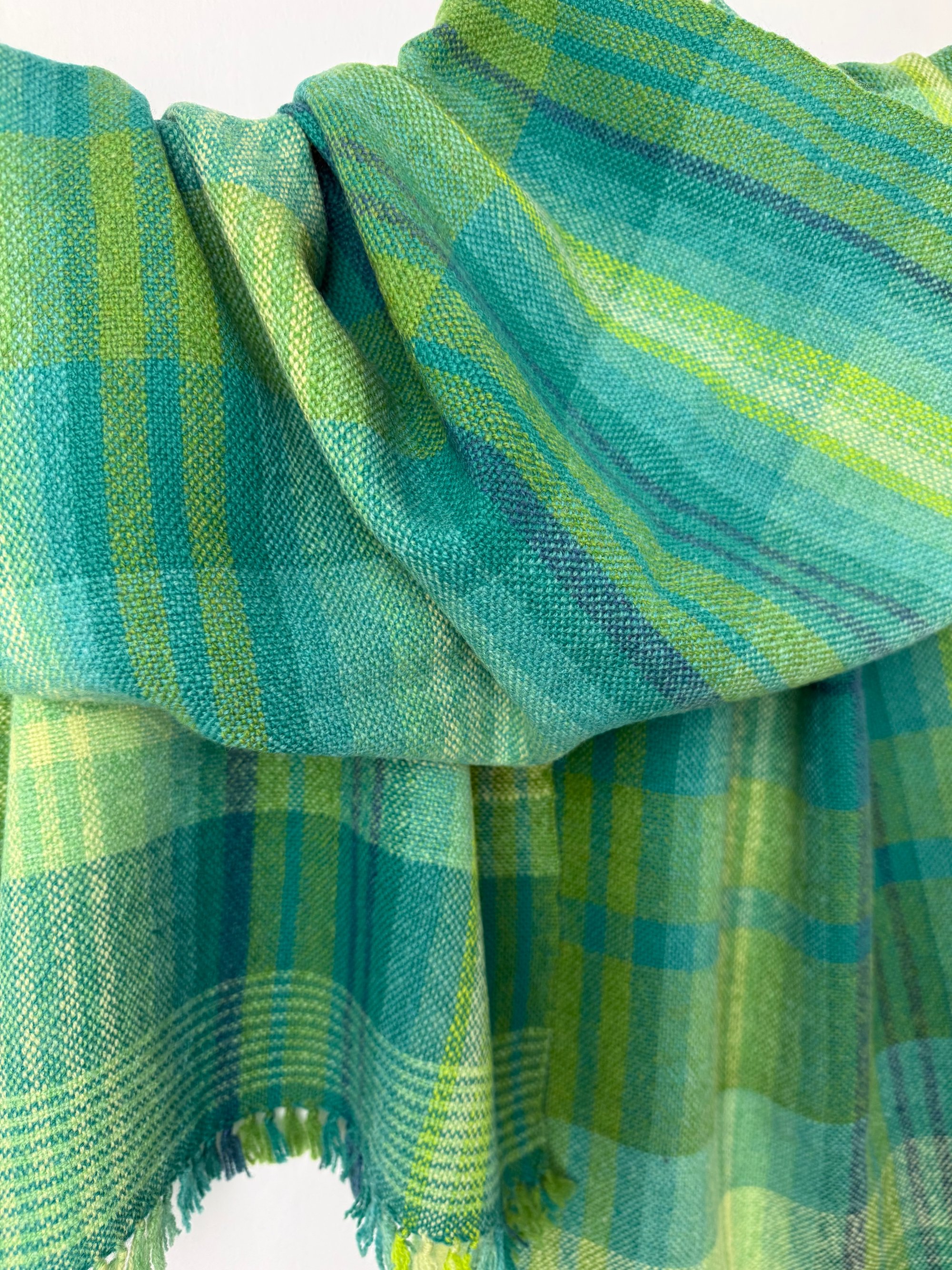 100% lambswool scarf hand woven on my preloved floor loom in my garden studio overlooking the North Cornwall coastline.