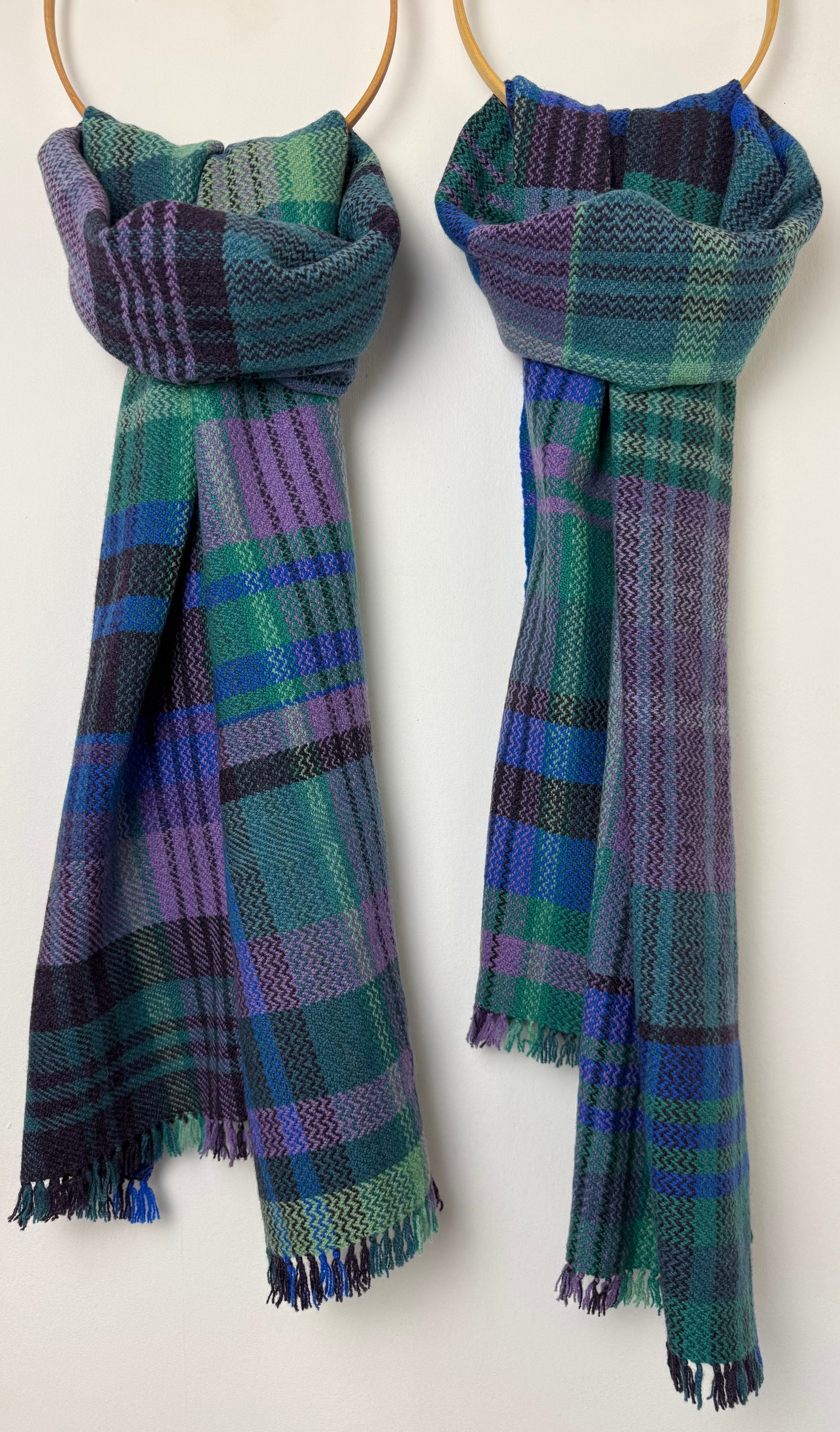 100% lambswool scarf hand woven on my preloved floor loom in my garden studio overlooking the North Cornwall coastline.